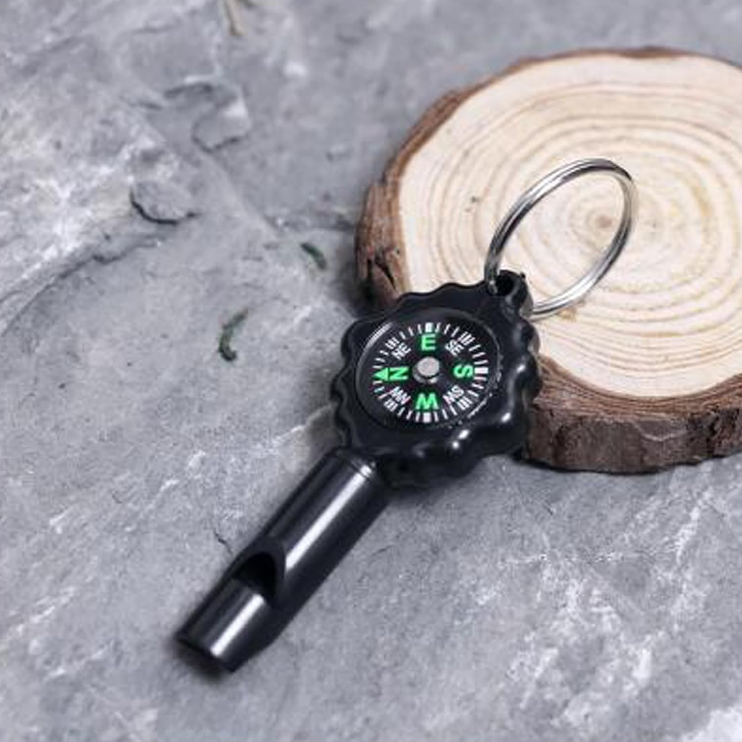 Durable ABS Outdoor Compass & Whistle Keychain – Perfect for camping, hiking, and survival. Features a high-precision compass and loud emergency whistle. A practical gift for adventurers!