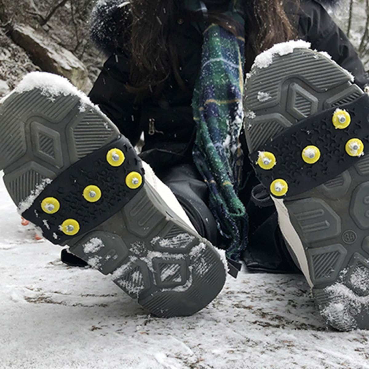 -Easily take or off to , sneakers, casual and dress shoes great for ice fishing, hunting, walking, jogging, hiking, running, snow shoveling, etc snow shoes grippers.