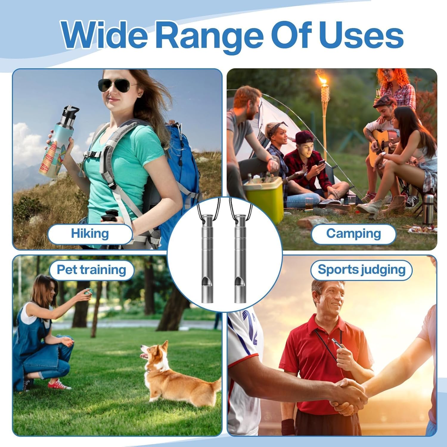 Multifunctional Use: Versatile titanium whistle for outdoor activities such as survival, camping, hiking, pet training, boating rescue signals, and more. Keep yourself safe and protected.