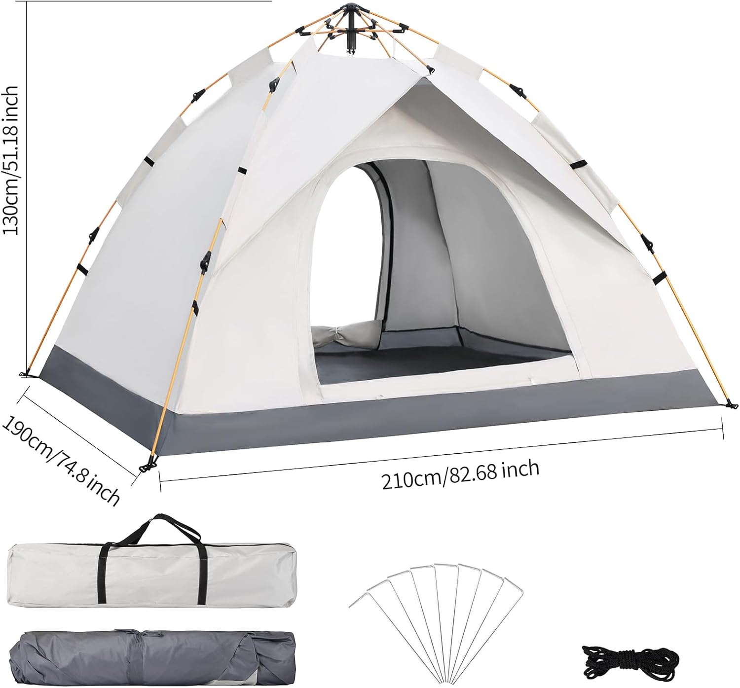 This tent is available in two styles, dual-layer door and four-layer door. The combination of the inner screen layer and the outer zippered fabric layer of the easy-up tent door provides plenty of air as well as privacy