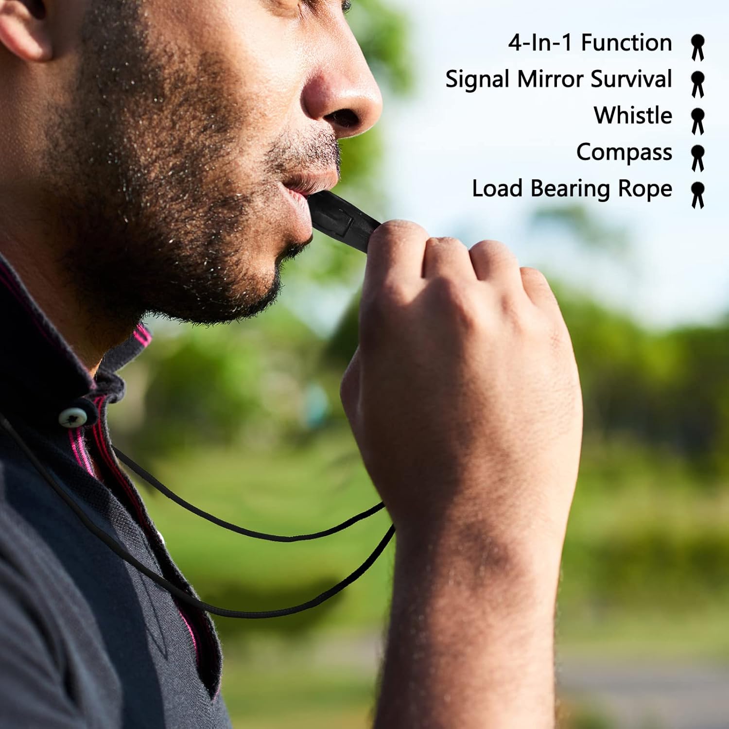 4-In-1 Function: our signal mirror contains a total of 4 functions, signal mirror survival, whistle, compass, load bearing rope, which are multifunctional outdoor distress tools; With built in precise aiming system, it is ideal for outdoor survival activities, long distance communication in the field, sending reflective survival mirror signals, etc