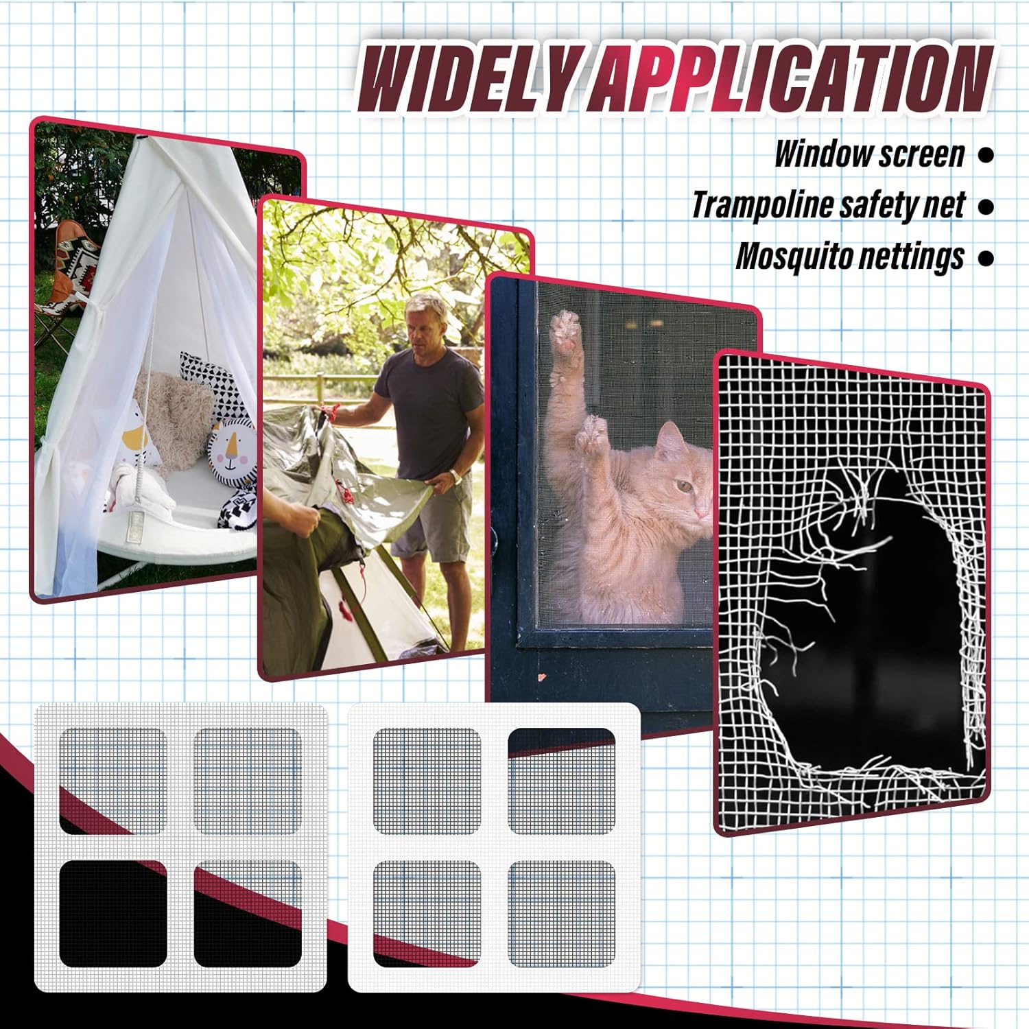 WIDELY APPLICATION : Not only can be used in various kinds of Door and Window Screens, patio door net, tent mesh, but also excellent tool for fixing exterior tents, RV screens and camping tarps for any sudden emergency needs when going outside for travel