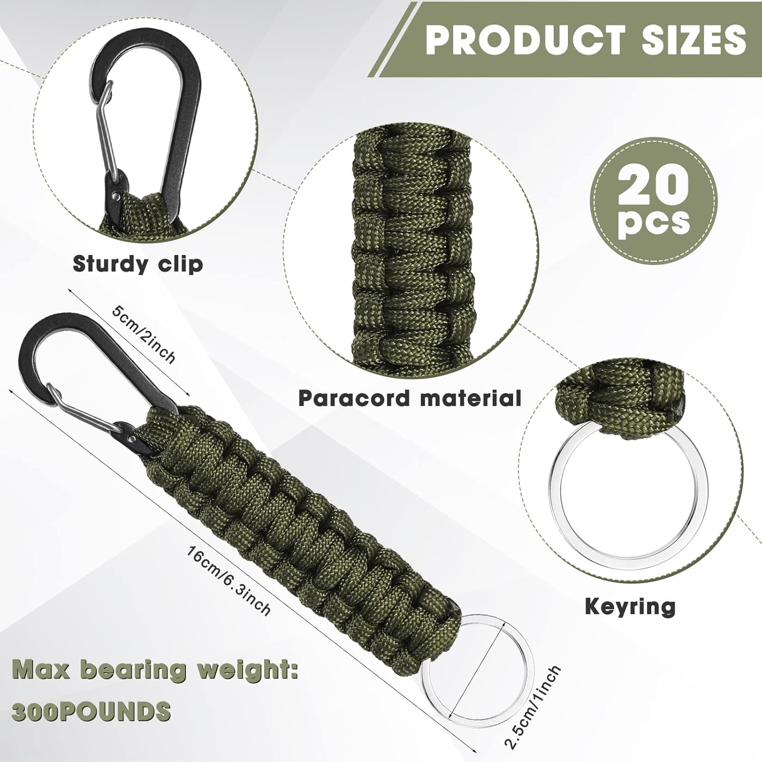 π₯Ύ Fumete 20 Pcs Paracord Keychain Military Braided Keychain Clip with Strap Paracord Backpack Strap with Hooks for Camping β Review, Key Features & Current Price