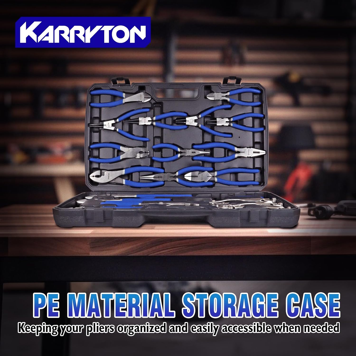 CONVENIENCE STORAGE: The KARRYTON pliers set comes with a handy storage case which is made of high-quality PE material, keeping your pliers organized and easily accessible when needed.