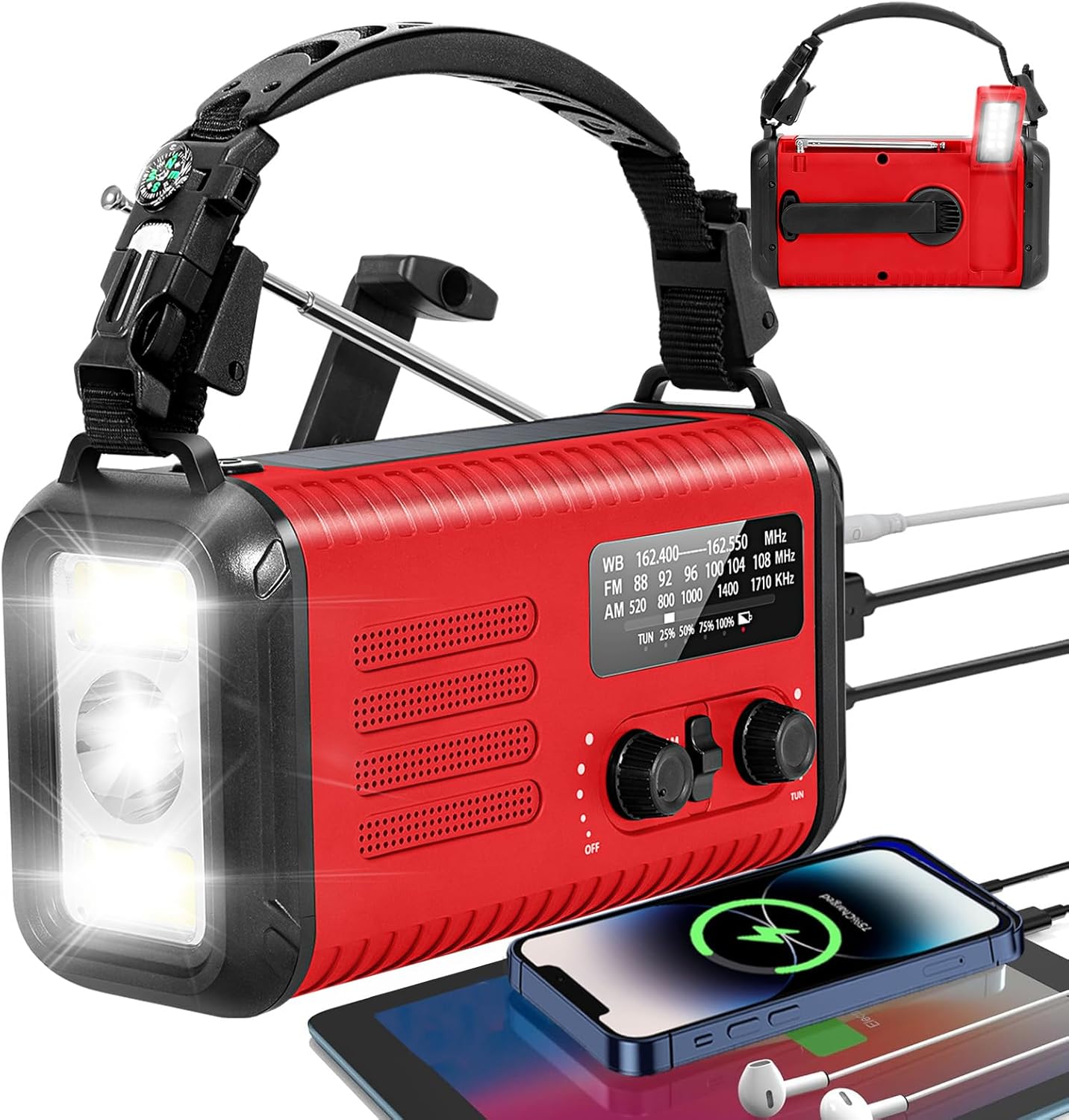 With a massive 20000mAh/74000mWh phone charger, it doubles as a crank radio flashlight cell phone charger, capable of charging two devices simultaneously. The bright 3W emergency flashlight and 2W reading lamp provide essential lighting, while the SOS alarm can signal for help in critical situations.