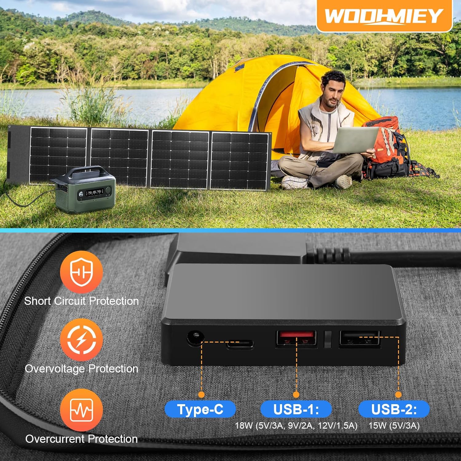 [Versatile Compatibility] The output junction box with smart voltage adjustment supports charging for laptops, tablets, phones, fans, work lights, drones, and outdoor energy storage systems, making it a versatile outdoor accessory.