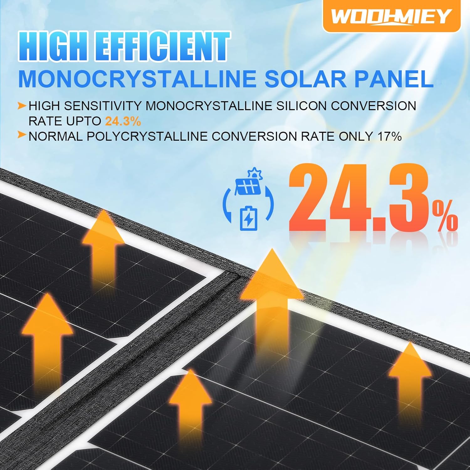 [High Efficiency Charging] Featuring monocrystalline silicon, this portable solar panel boasts high conversion efficiency, ensuring powerful electricity generation to keep your devices charged during outdoor adventures.