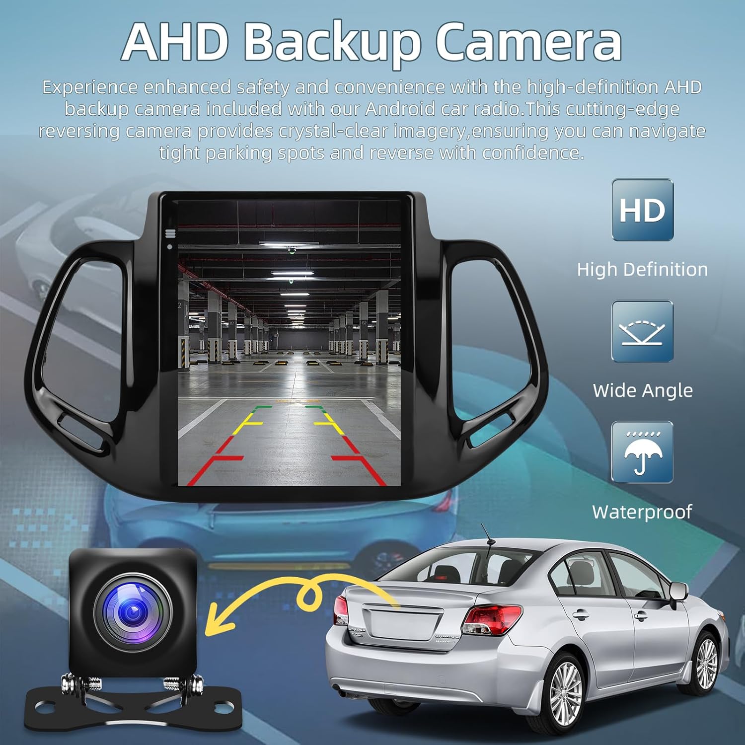 AHD Backup Camera: The vehicle is equipped with a waterproof AHD backup camera featuring exceptional night vision and a 170° ultra-wide-angle field of view. When reversing, the AHD camera’s backup image will automatically display on the touchscreen. You may also use the factory rear camera, which supports connection.