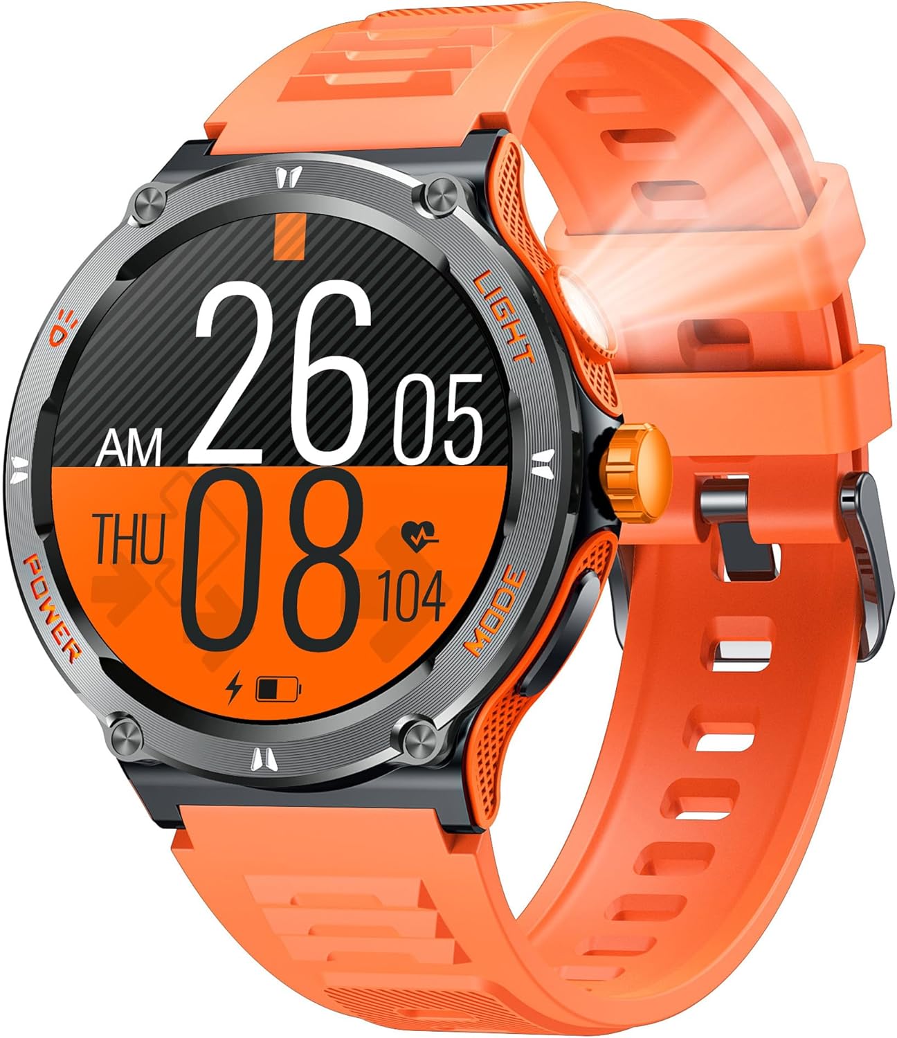【LED Flashlight, Military Grade Standard】Soudorv rugged military smart watch is equipped with a bright LED flashlight and compass, with a lighting distance of up to 5 meters, so you are no longer afraid of the dark and getting lost when traveling! Ideal for camping, hiking and night-time adventures. Soudorv rugged smart watches successfully passed 12 military tests, is rugged, waterproof, dustproof, and can handle all the extreme environments.