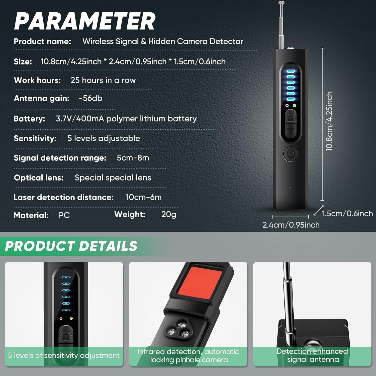 【Comprehensive privacy protection】: The 2025 new high-efficiency anti-spy camera detector is designed to find and identify all kinds of hidden cameras, listening devices and GPS trackers. Whether you are in a hotel, home, office, it can provide all-round security protection.