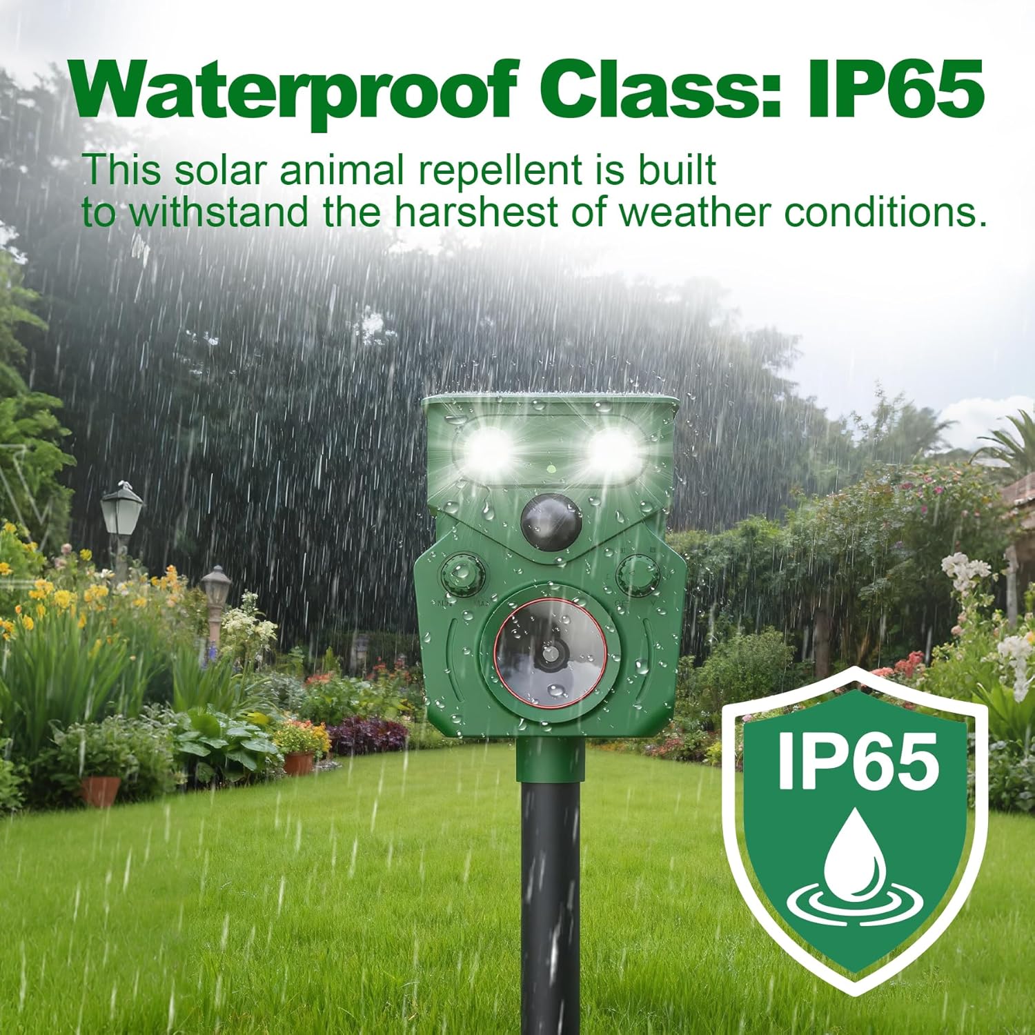 Weatherproof Design:Engineered for all conditions, this deer repellent boasts IP65 waterproof rating and durable construction, guaranteeing reliable performance rain or shine.