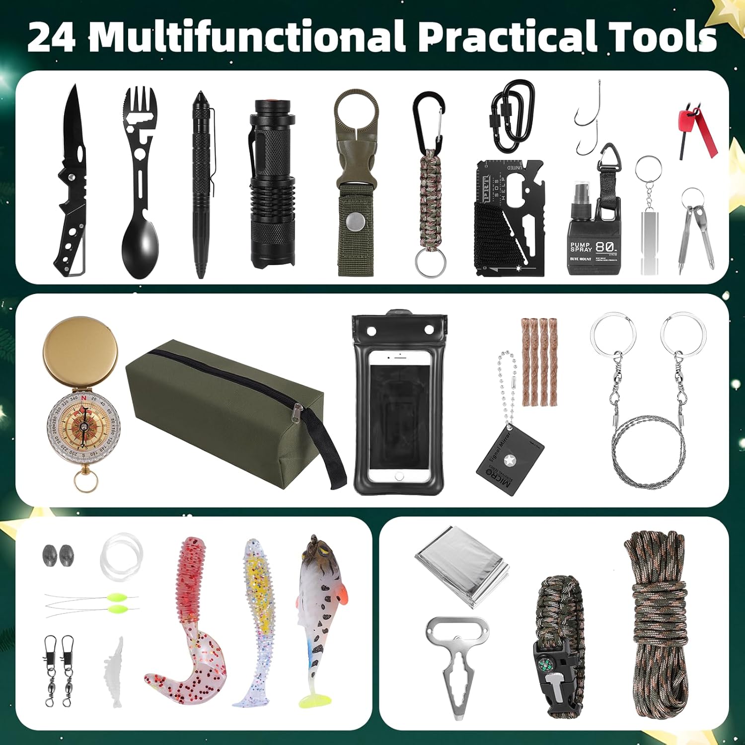Make This Christmas Countdown an Unforgettable Adventure! Elevate the holiday season for the outdoorsman in your life with the 2025 Survival Kit Advent Calendar for Men. This isn’t just another Christmas calendar—it’s 24 days of anticipation, practicality, and excitement, perfectly crafted for adventurers. A Daily Surprise of Premium Gear From December 1st right up to Christmas Eve, each day reveals a new, high-quality survival tool. Watch as he builds a complete 24-in-1 kit, transforming the festive countdown into an epic gear unboxing experience. It’s the perfect way to build a practical and versatile survival kit for any outdoor scenario. Curated for Reliability & Performance We understand that gear must be dependable. That’s why every item—from the essential fire starter, emergency blanket, and paracord to the precision compass and tactical pen—is crafted from durable, weather-resistant materials. Engineered for performance, this collection is built to withstand the rigors of the wild, ensuring he’s prepared for camping, hiking, fishing, and beyond. Compact, Organized & Ready for Anything All 24 tools are neatly housed in a compact, lightweight, and waterproof tool bag. Designed for ultimate portability, the entire kit can be easily stored in a hiking backpack, car glove compartment, or travel bag. Everything stays organized, protected from the elements, and right at his fingertips when an adventure calls or a situation demands. The Ultimate Gift He Truly Wants Struggling to find the perfect Christmas gift for your dad, husband, boyfriend, or son? Your search is over. This advent calendar is the thoughtful, unique, and exciting present that stands out from the ordinary. It’s more than a gift; it’s 24 days of memorable surprises and a foundation for countless future adventures.