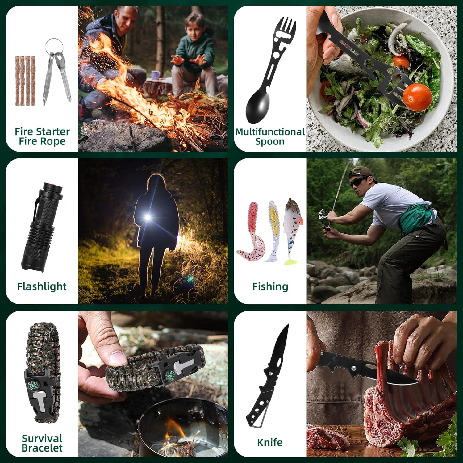 All-in-One Emergency Gear – Ready for Camping and Adventures Be prepared for your next outdoor adventure. This versatile survival kit covers a wide range of needs: use the included fishing kits for recreation, the wire saw for camp tasks, and the tactical pen for everyday use. It’s designed as essential gear for camping trips, hiking excursions, fishing adventures, and to support your emergency preparedness planning.