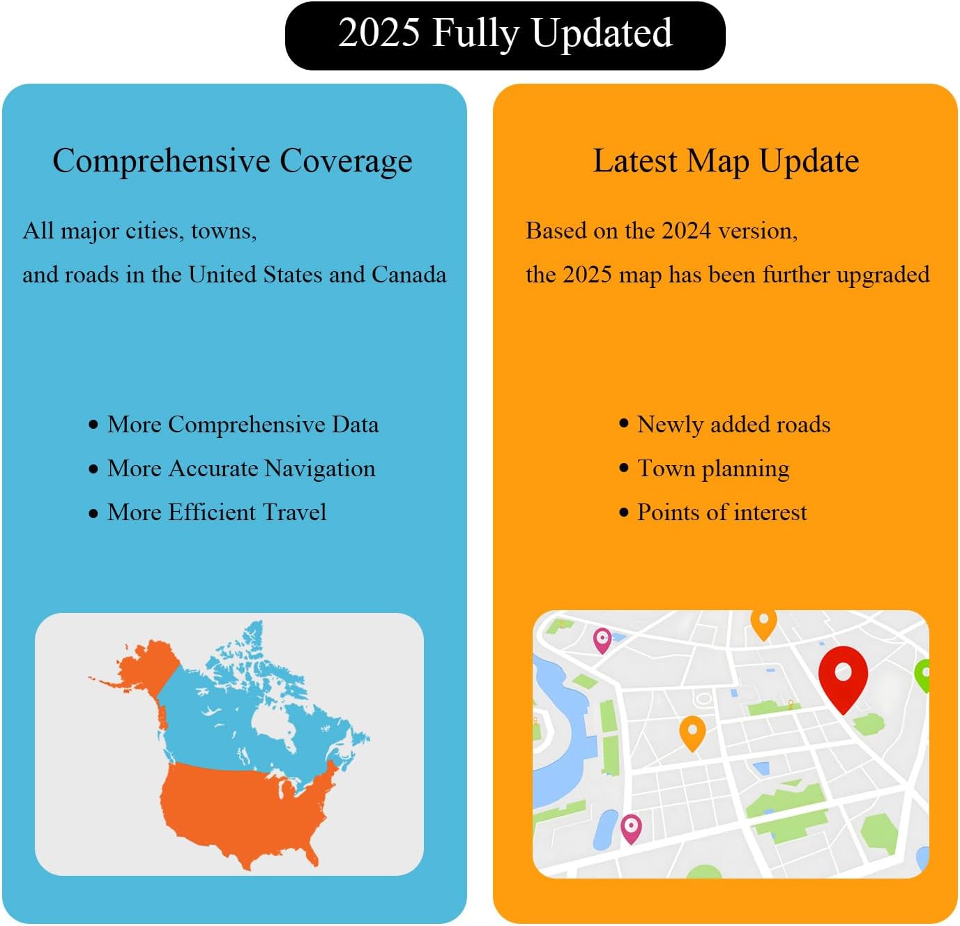 Map Data Update:The 2025 edition builds upon the 2024 data with updates, providing the latest information on ATMs, restaurants, gas stations, new road miles, hotels, speed limit signs, and new points of interest, helping you easily find the services you need whether you’re in the city or the countryside.
