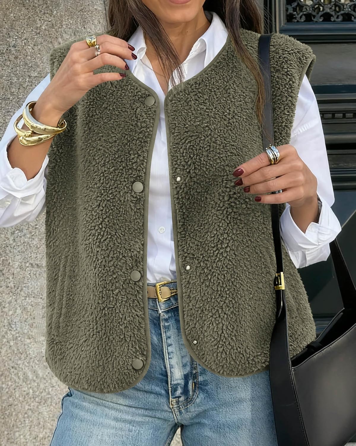 KIRUNDO Fall Clothes for Women Button Down Sherpa Fleece Vest Warm Winter Vest