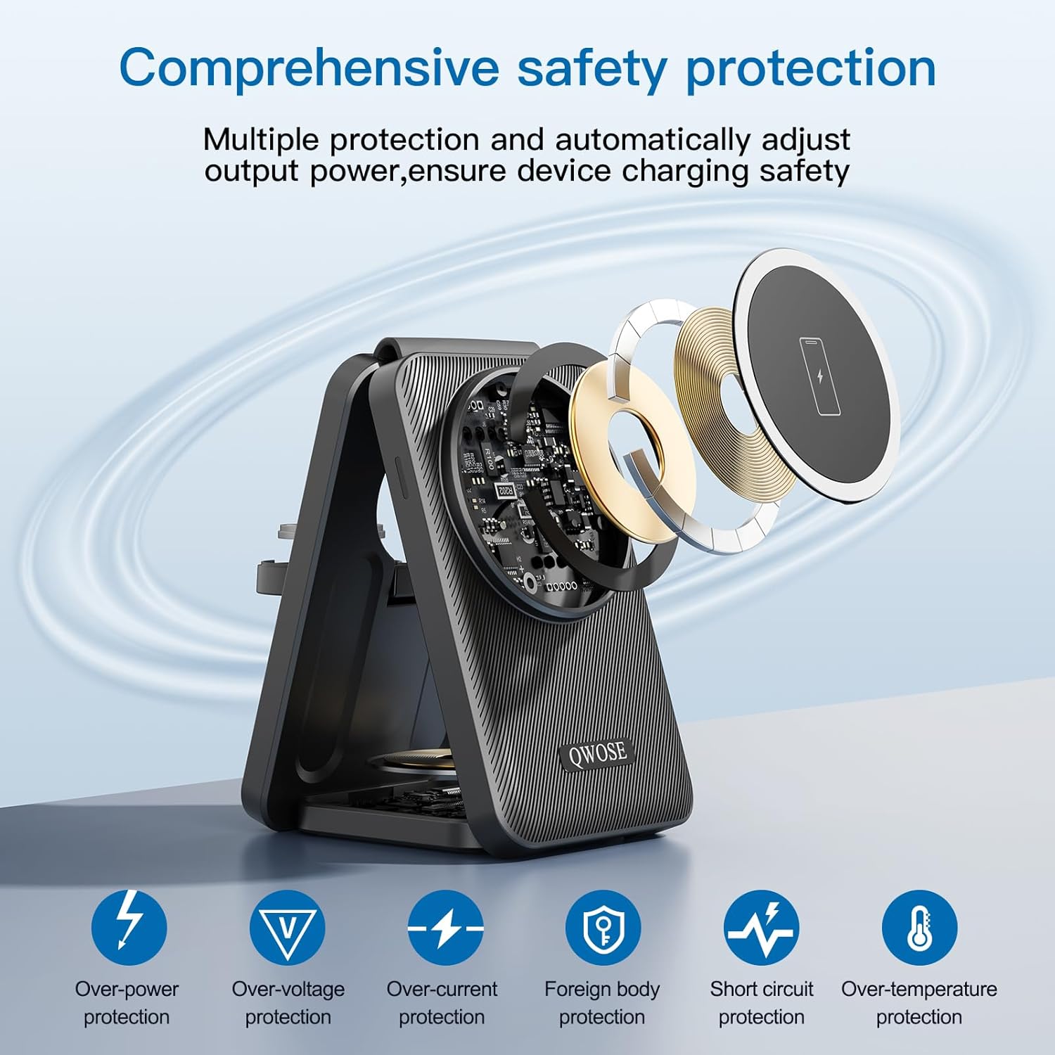 3 in 1 Foldable Wireless Charger:Magnetic to i phone charger for multiple devices A pple;easily adjust the vertical or horizontal angle, precise adsorption;non-slip;rapid full charge in 2.4 hours;give you a stable charging experience.