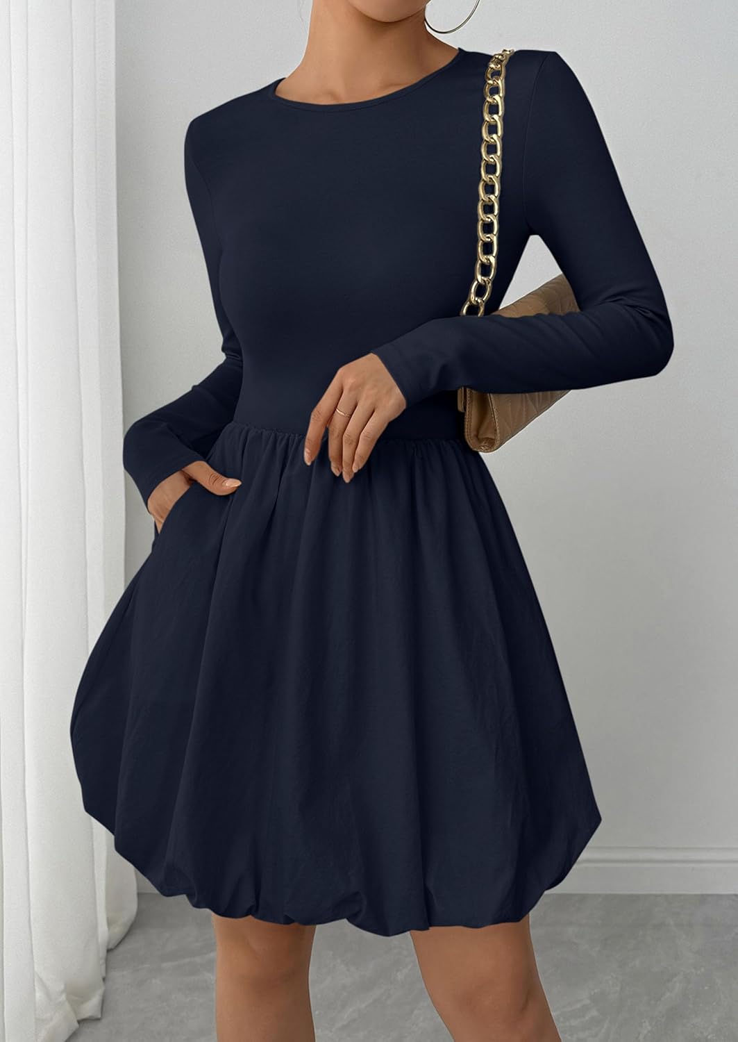 PRETTYGARDEN Long Sleeve Dress With Pockets Bubble Dress For Women