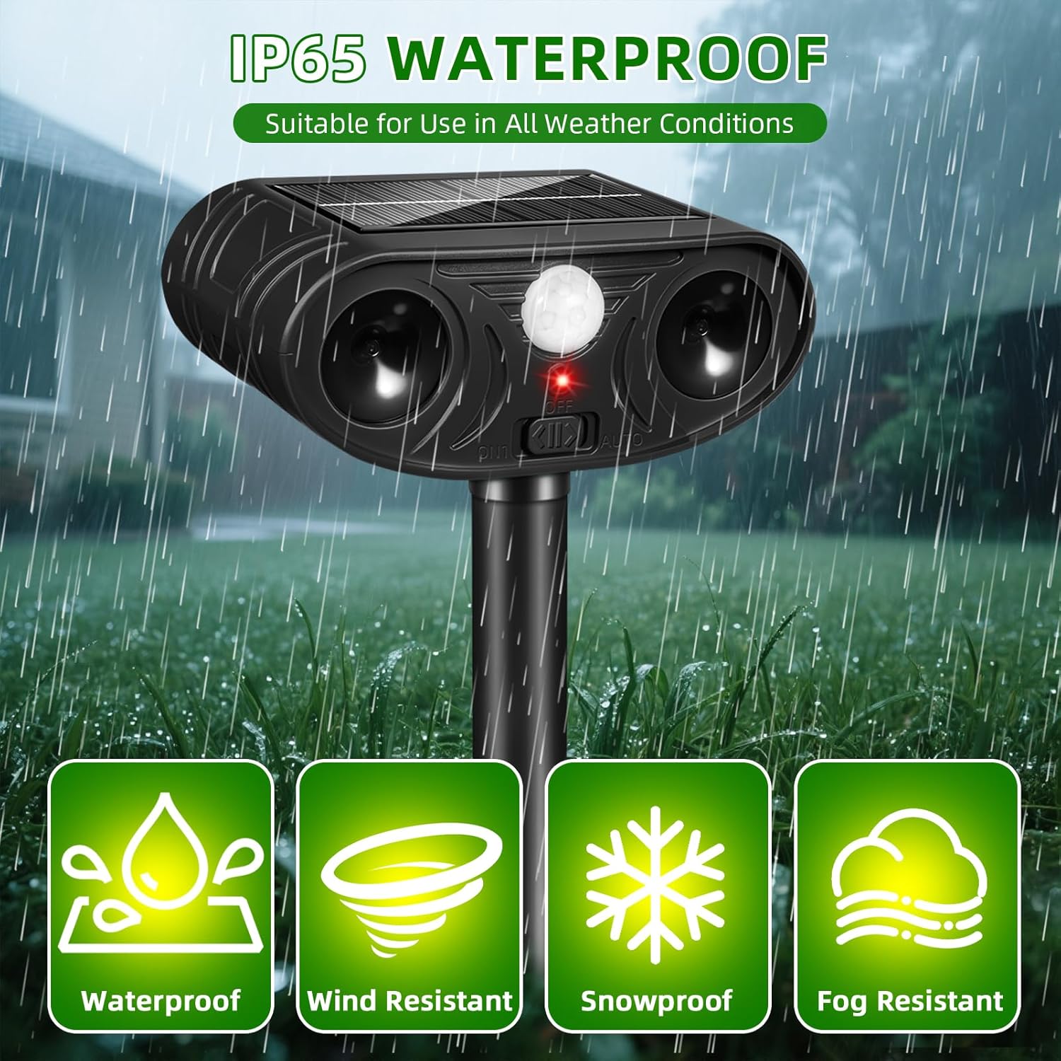 【Easy installation & Carry】Easily assemble the poles and stake it into the ground, keeping the head 9–10 inches above the surface for optimal performance.Position it in areas where animals are commonly seen to enhance coverage.Besides, it is small enough for you to take it outdoors, such as when camping.