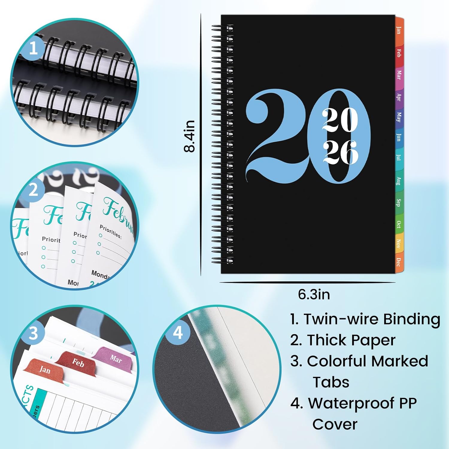 SUPERIOR QUALITY – Thicker paper than normal 2026 planner in the market to reduce ink leakage, erase fraying and shade issues + Organize your life in style with this elegant and gorgeous colorful planner.