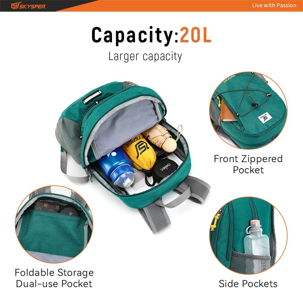 Lightweight & longlasting: Constructed from high-quality materials, the 20L foldable back pack is both lightweight and durable. It withstands rugged use while keeping you light on your feet, making it an ideal choice for any adventure