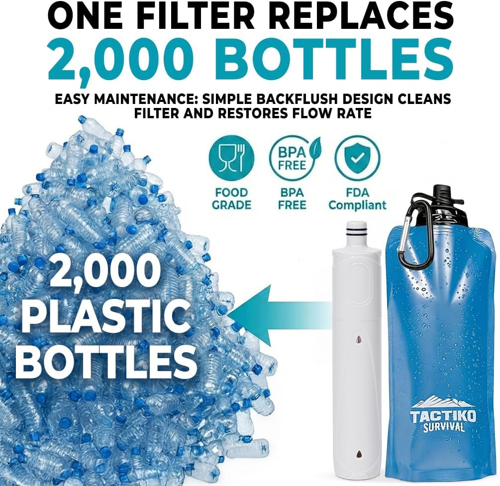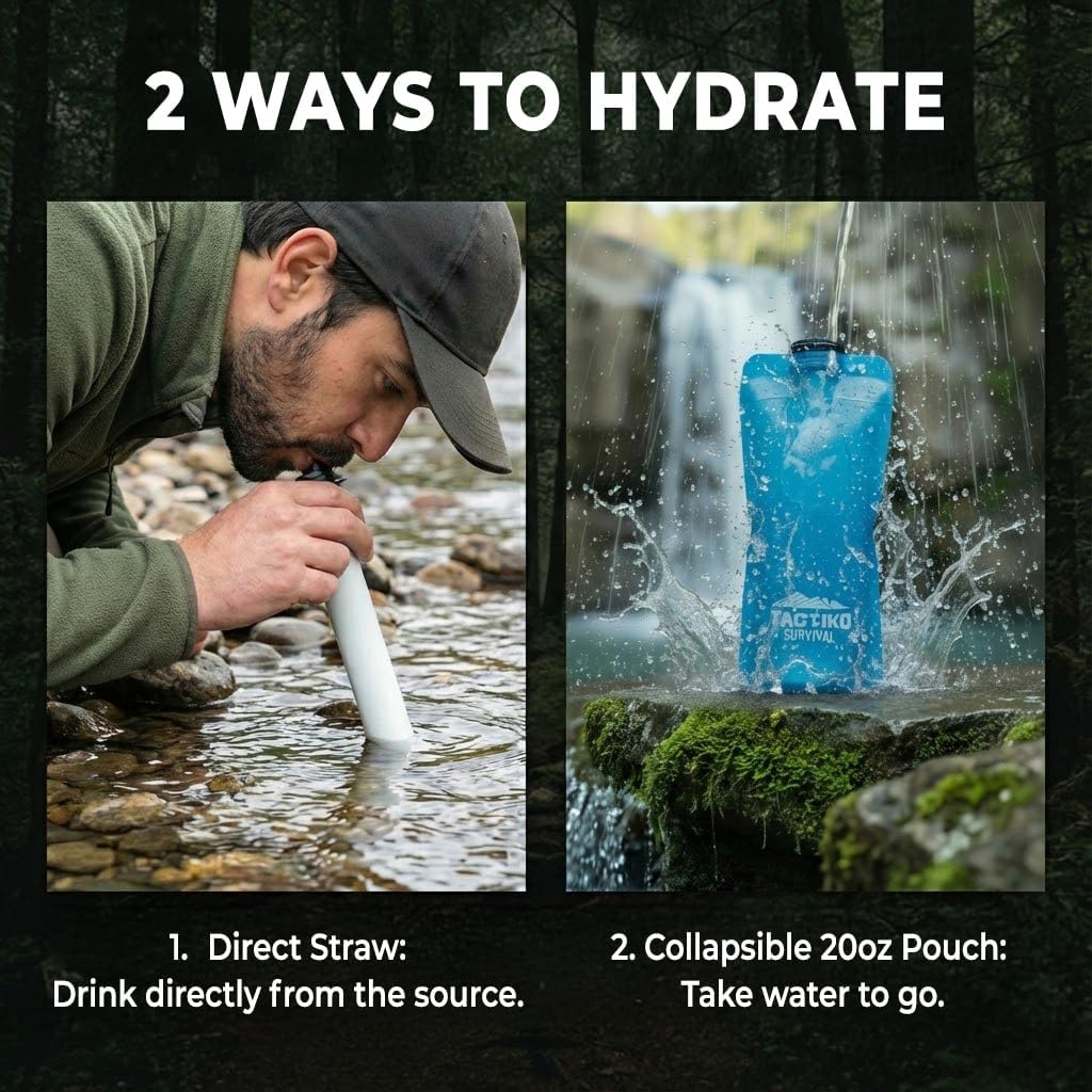Whether you are deep in the backcountry, traveling internationally, or preparing an emergency bug-out bag, water is your most critical resource. The TactikoFiltration System lets you drink directly from freshwater sources, removing physical contaminants and instantly improving taste.
