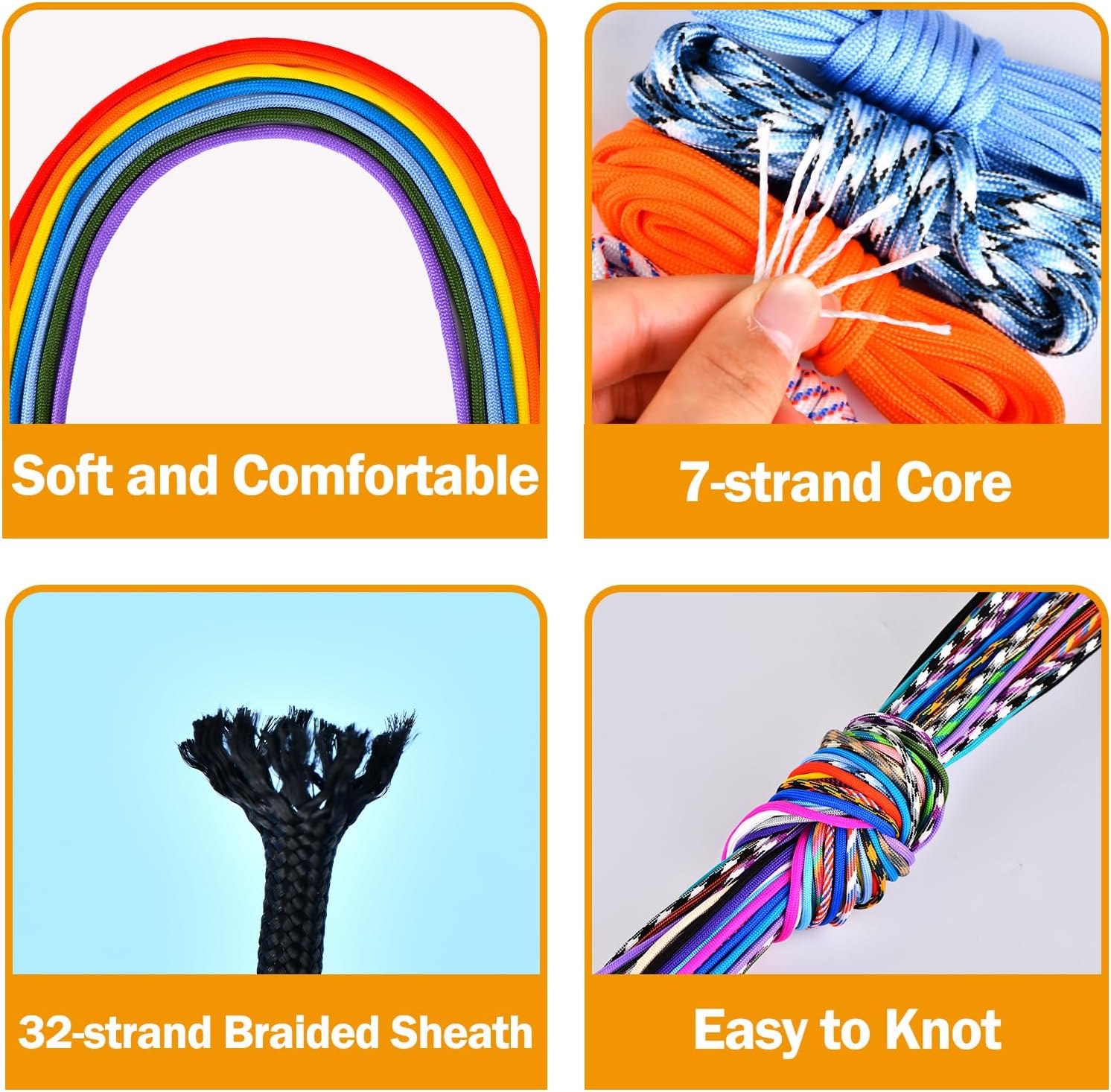 Multi-purpose – Craft survival paracord rope bracelets, lanyard, or leashs. In the great outdoors, it instantly transforms into tent guy lines, luggage straps, wilderness camp ropes, or emergency rescue cords