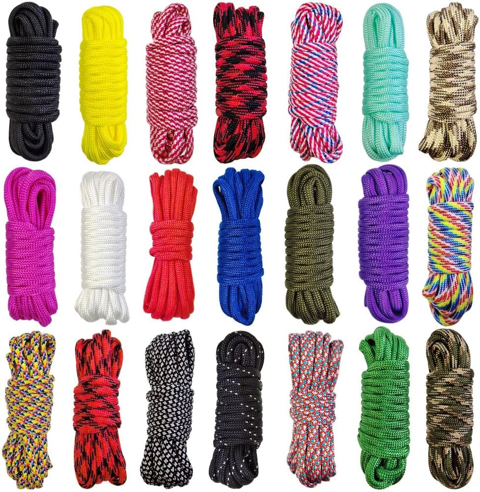 VERSATILE KIT: Complete set of 21 different colored paracord ropes, each measuring 10 feet in length, perfect for various DIY projects