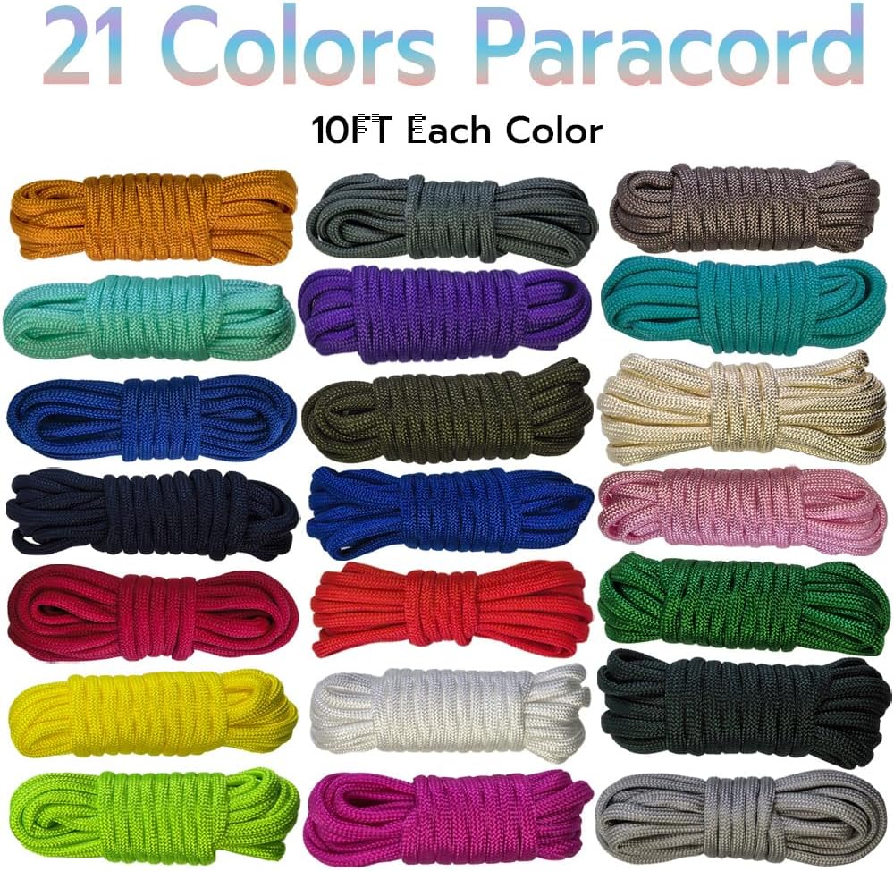 VERSATILE KIT: Complete set of 21 different colored paracord ropes, each measuring 10 feet in length, perfect for various DIY projects