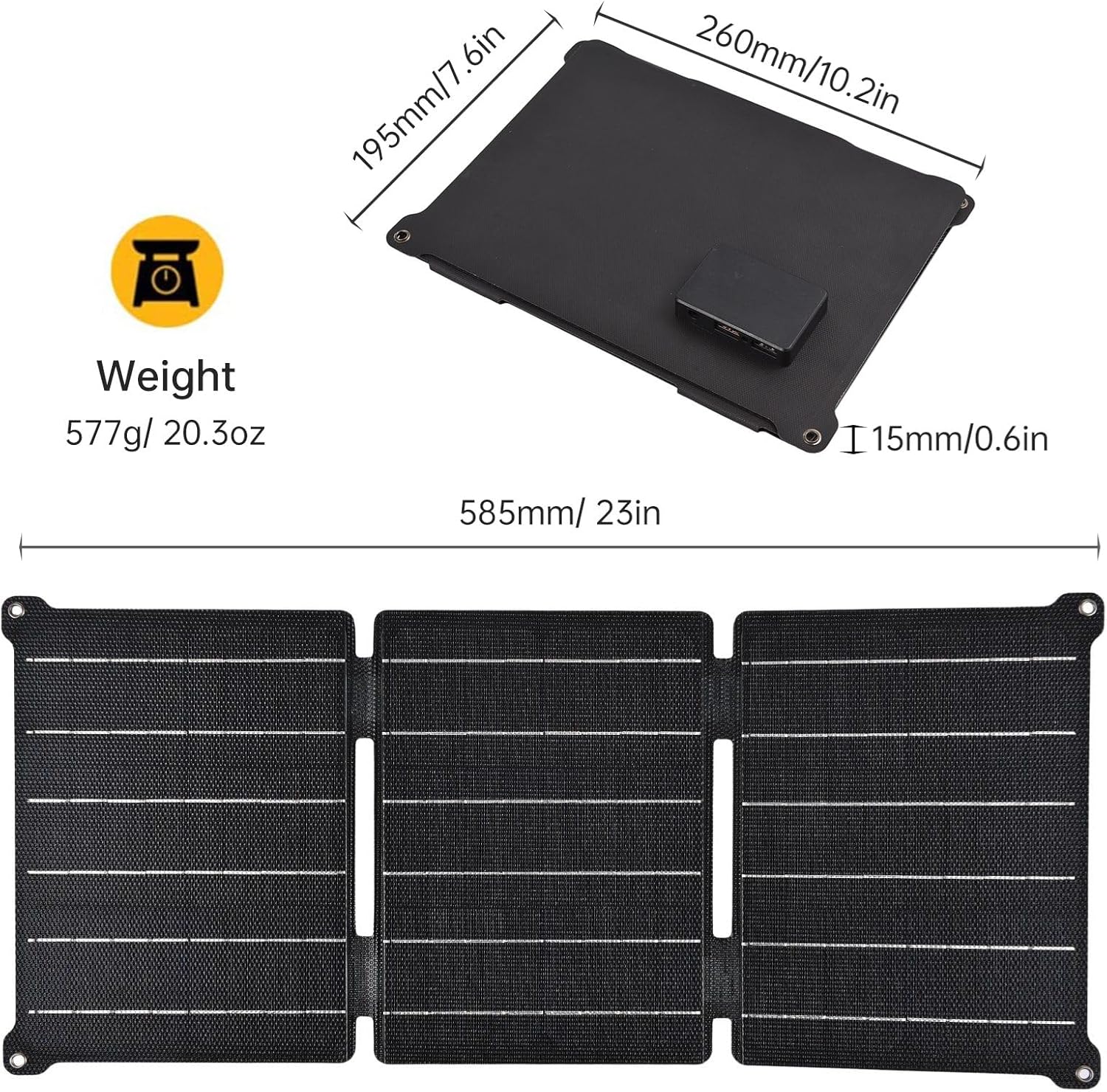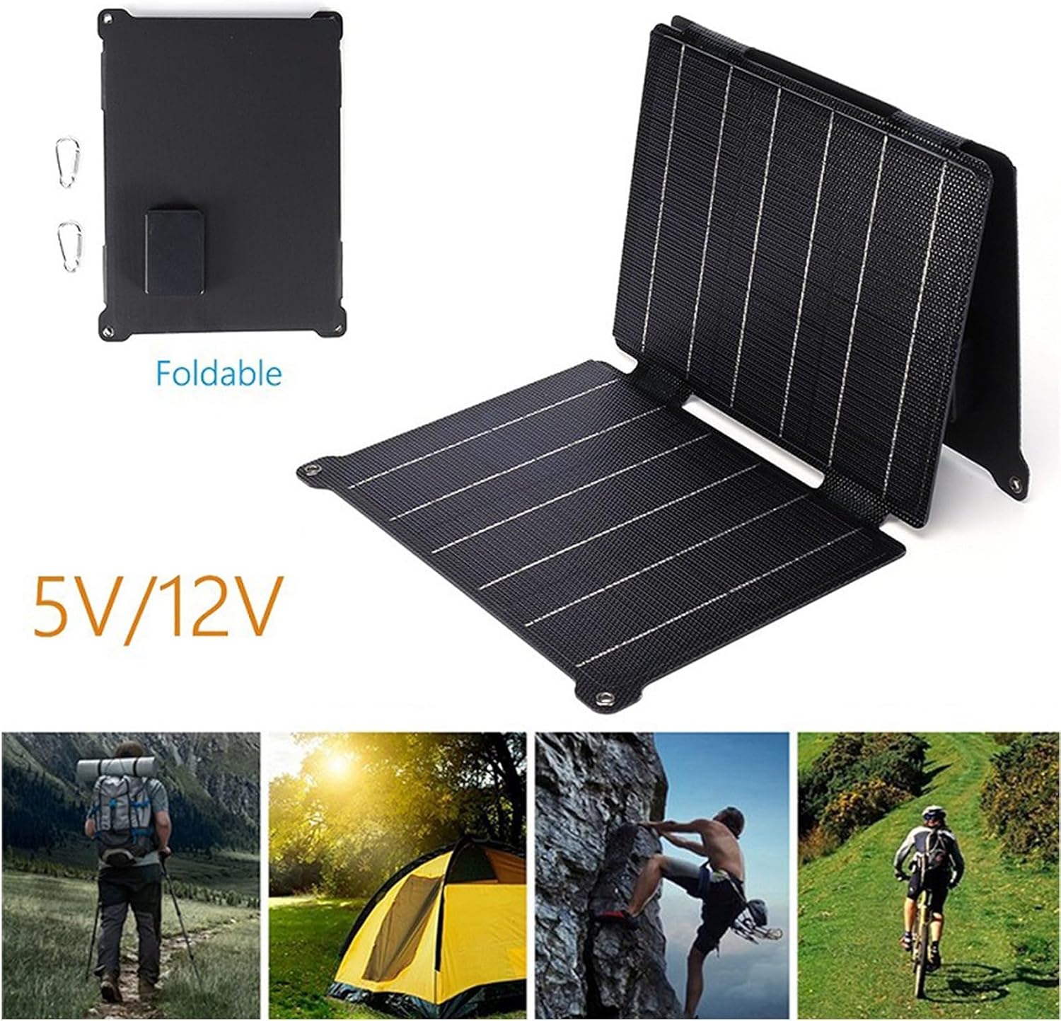 【Portable and Compact Design】This foldable solar panel is lightweight, compact, and designed for easy storage with snap fasteners. Measuring just 6.9 * 5.1 * 0.6 inches when folded and weighing only 6.3 ounces, it offers maximum portability. An attachment hook makes it easy to connect to your backpack during hiking or outdoor activities.