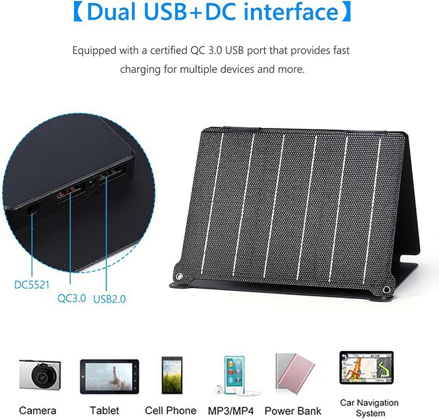 【Efficient 8W Foldable Solar Power】This advanced solar panel converts sunlight into electrical energy, functioning as a 5V rechargeable battery solar charger. Its innovative design harnesses solar energy through photoelectric effects, making it ideal for a variety of devices. Stay powered up and eco-friendly anywhere you go.