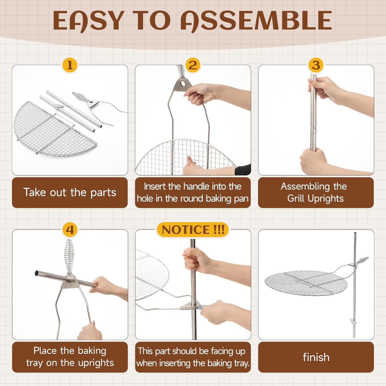 Foldable Design: the round grill pan of our campfire grill adopts a foldable design, campfire grill can be matched according to the number of people when usage, you can grill with a round grill grates, or you can fold the grill pan when using it alone and use it with a semi-circular grill pan; You can adjust the shape of the grill pan according to the number of people using it, at the same time, the grill pan is equipped with a metal handle, which is convenient and easy to adjust the position