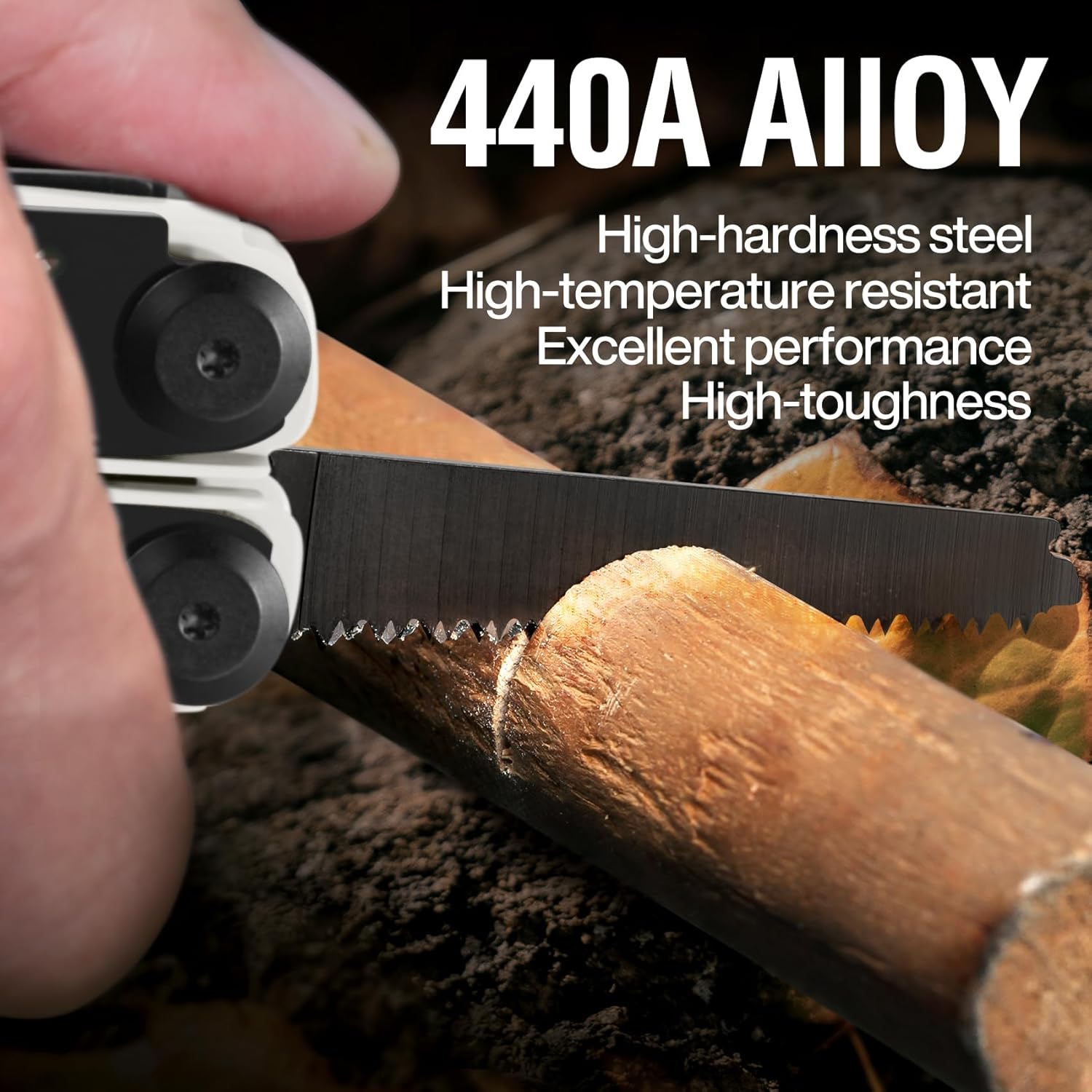 🔧440A & 23 IN 1 MULTI TOOL: multitool blades including pliers, wire cutters, wire stripper, knives, saw, spring-action scissors, can & bottle openers, files,screwdrivers,4 in 1 Hexagon wrench,11 screwdriver extension kit.