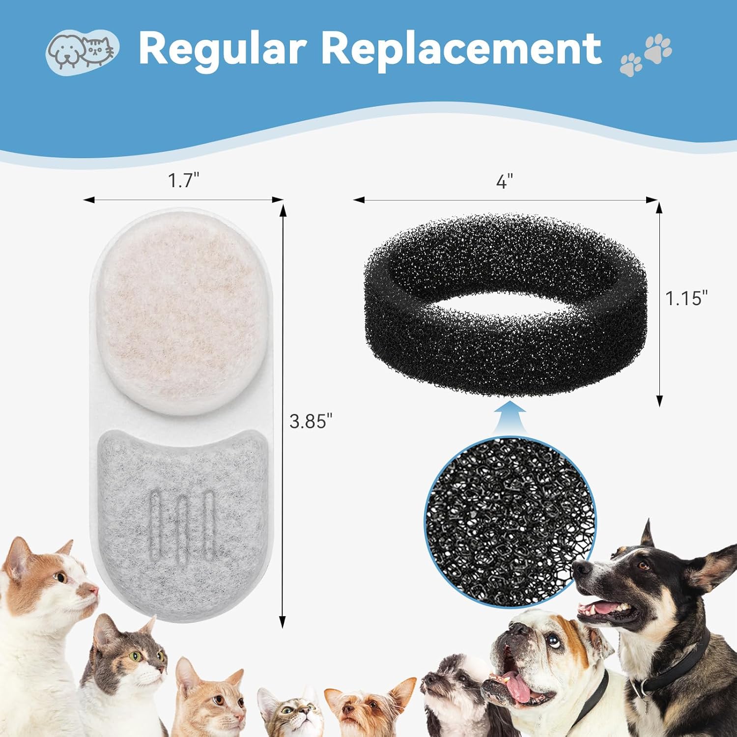 【24/7 Support】 You will receive a box containing 12 water filters and 12 sponges as a replacement pack. And contact us anytime for product guidance or replacement assistance; we resolve issues promptly to keep your pet’s fountain running smoothly.