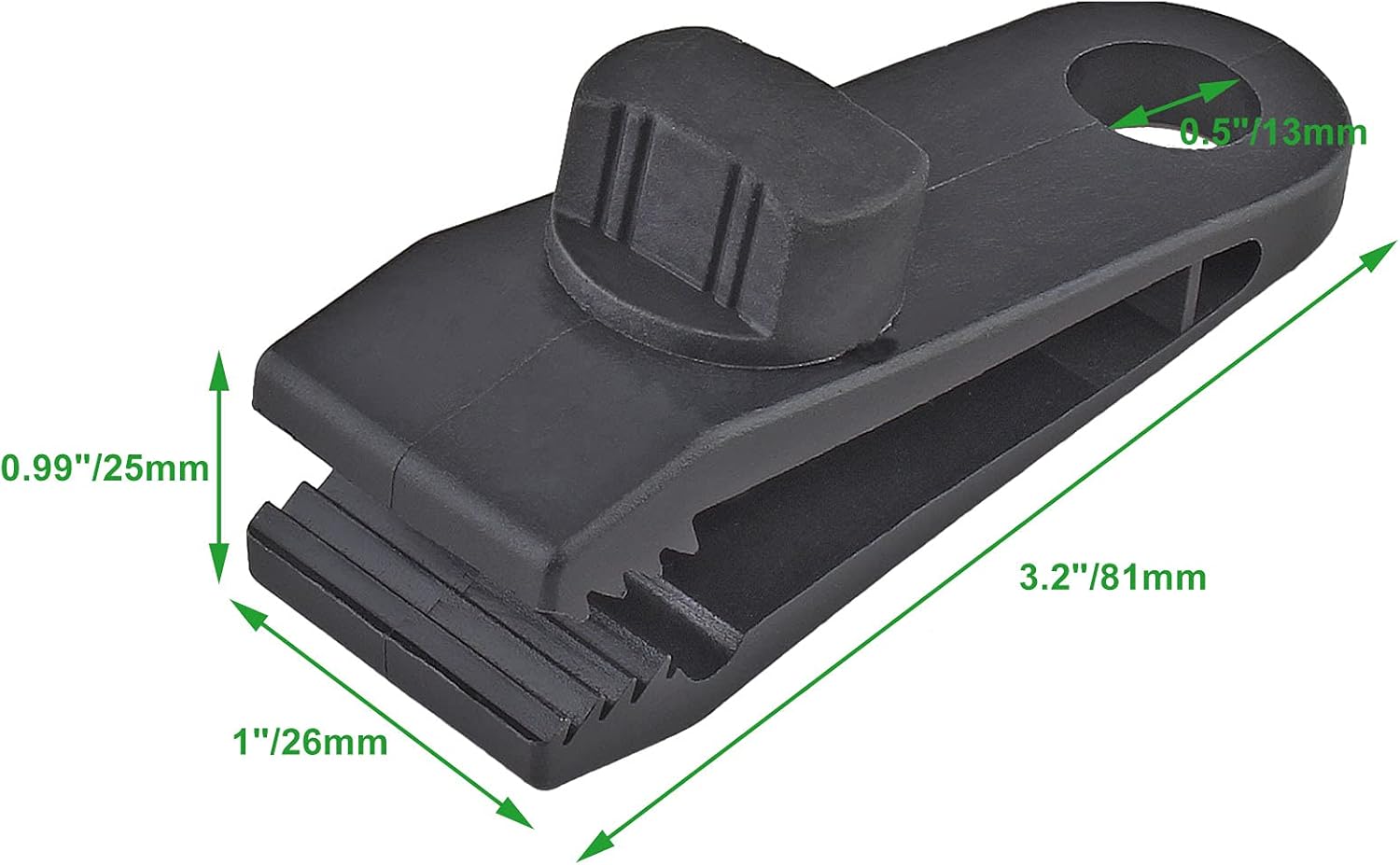 Multi-functional clip hook: Tent clamps are designed for versatility. It is suitable for holding up outdoor camping tents, awnings, swimming pool covers, bike cover, caravans, awnings, boat covers, temporary coverings or any fabric that requires extra support points.