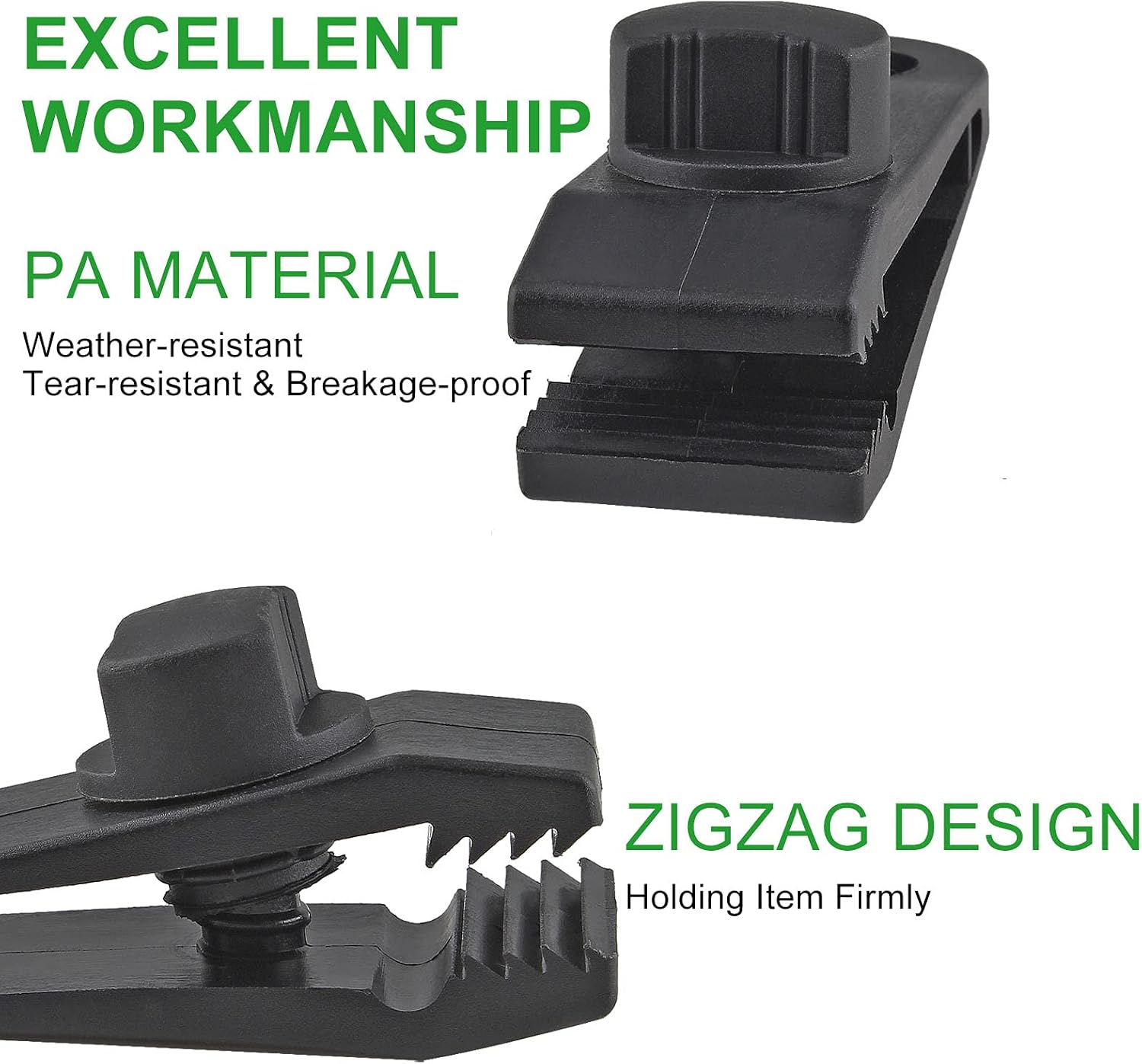 Outstanding Material: The lock grip is made of PA material for waterproof, weather-resistant, tear-resistant, breakage-proof, lightweight, and durable. You can reuse these tarp clips for a long time