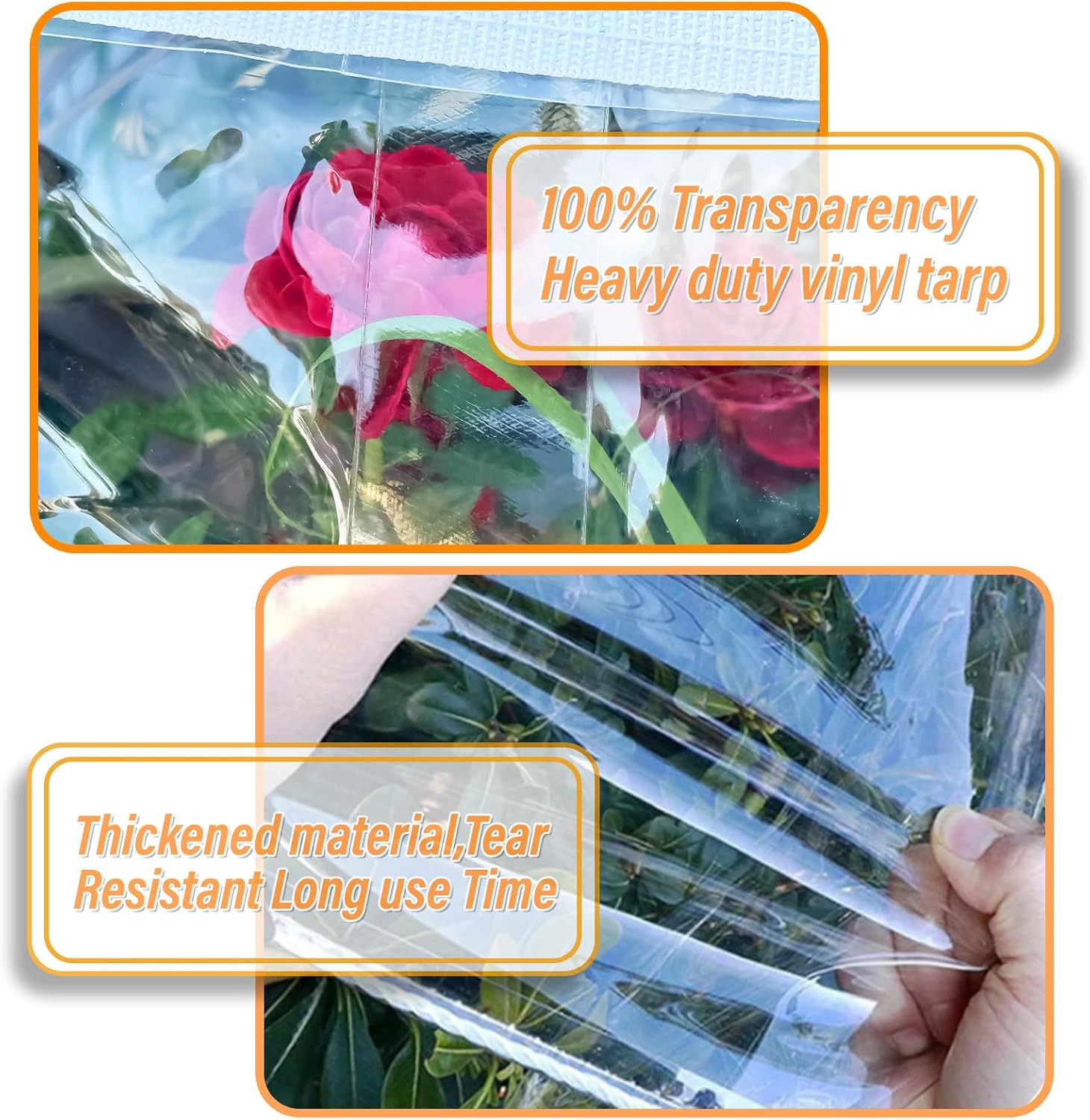 ๐๐ฅ๐ญ๐ข๐ฆ๐๐ญ๐ ๐๐ซ๐จ๐ญ๐๐๐ญ๐ข๐จ๐ง:The thickness of our clear tarps with grommets reaches 24 Mil, which can block the airflow and has a better windproof effect. In the cold winter,shield your valuables from withstand the cold wind for you with our robust clear vinyl tarp, It can also block UV and strong light well in summer, providing you with a more comfortable space,ensuring unparalleled durability in any outdoor environment