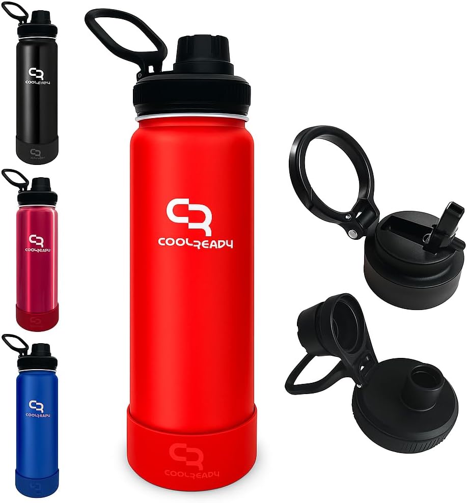 🥾 24 oz Red Insulated Water Bottle with Straw & Spout Lids – Slim Stainless Steel Thermo Flask, Cup Holder Friendly Design, Double Wall Cold 24 H Hot 12 H + Silicone Boot for Travel & Gym — Review, Key Features & Current Price