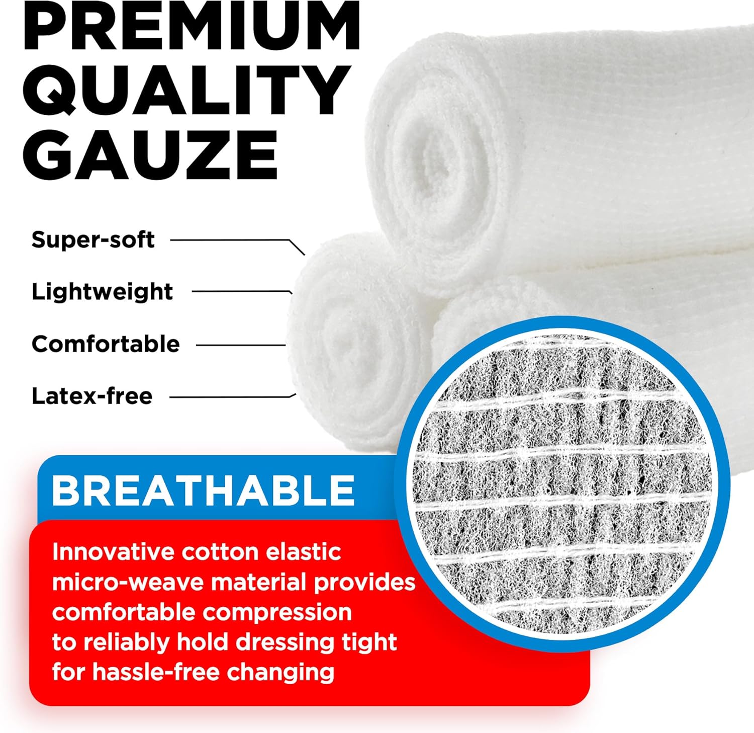 EASY TO USE — High-grade cotton-elastic material makes our gauze bandage rolls easier to apply than traditional roll gauze and allows for a lint-free dressing change.