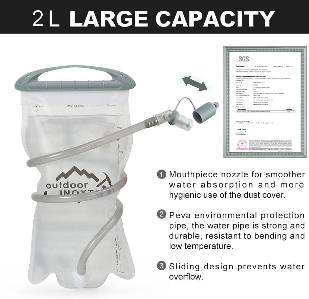 【Inoxto Hydration Bladder】: Our hiking backpack comes with a 2 liter hydration water bladder. The water temperature is -20 ~ +50 ℃, and it is easy to clean. The water line (40 ” long, 1cm diameter) provides healthy water flow and is easy to drink.