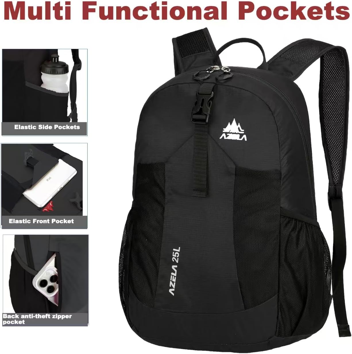 Spacious 25L Daily Workhorse: The lightweight hiking backpack fits gym clothes, groceries, or 2 days trip gear! Organized with a main compartment + front pocket+ 2 side pockets. Breathable mesh straps prevent sweat buildup during long wear.