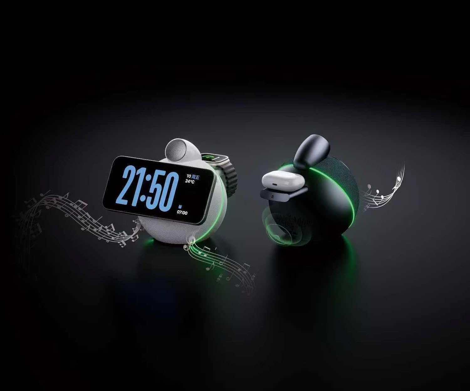 Gradient Ambient Light, Visualize Your Music: As a wireless charger with light, its lights flow gradually with the melody, letting you “see” music emotions. Multiple light modes are adjustable to create your exclusive audio-visual space—whether for parties or alone time, light and shadow dance to the rhythm.