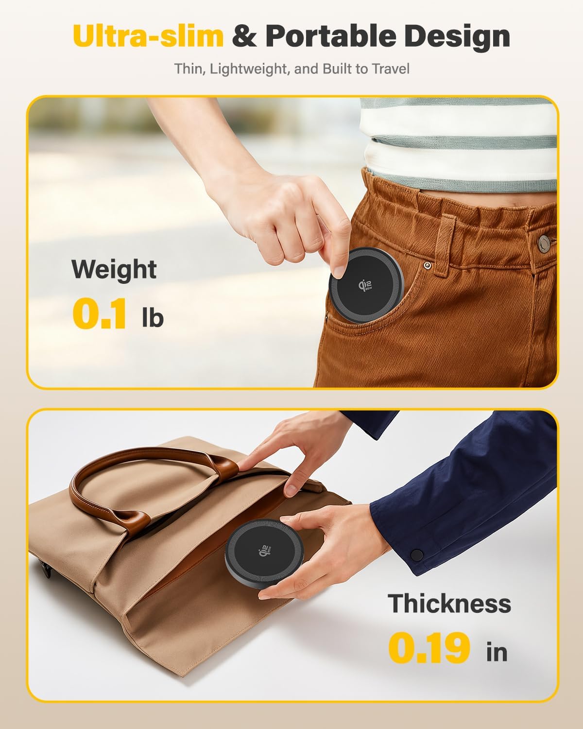 【Ultra – Slim and Compact Design】: Its sleek, flat design makes this 25w charging pad for iphone easy to carry and place anywhere. Whether it’s on your office desk, bedside table, or in your travel bag, this 25w magnetic wireless charger won’t take up much space. The minimalist white color also adds a touch of elegance to any environment.