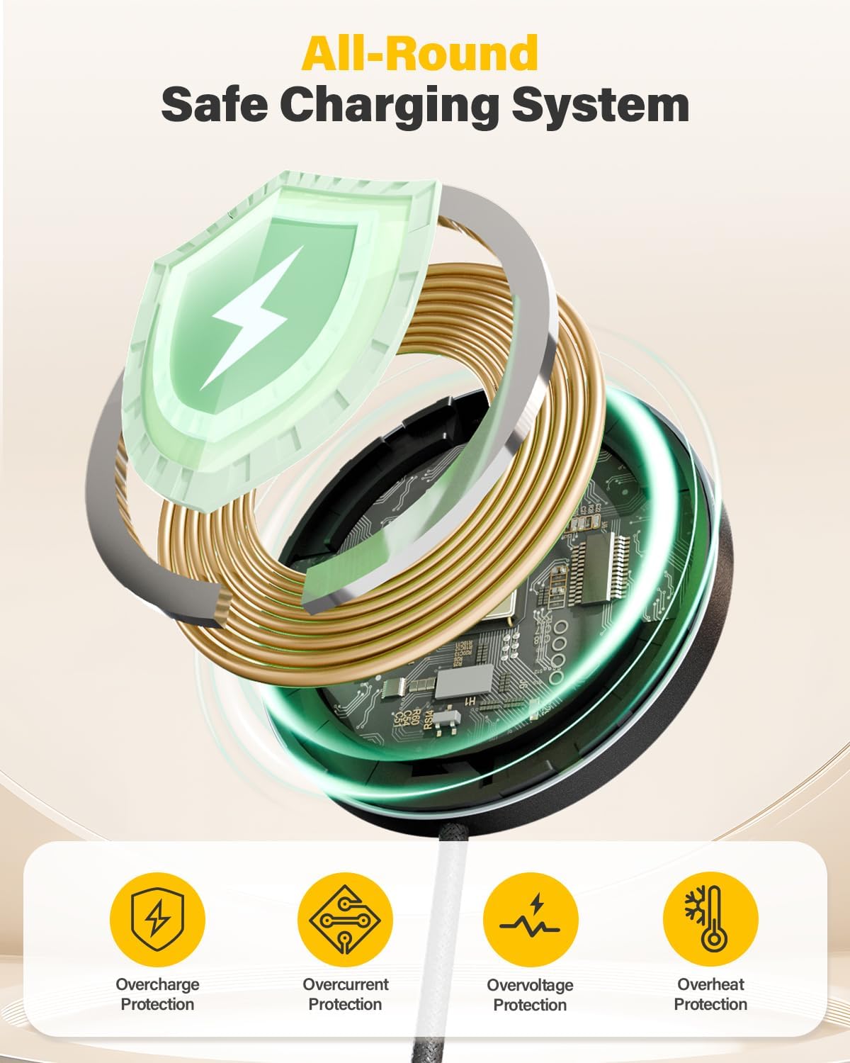【Safe and Reliable】: This 25w magnetic wireless charger built – in multiple protection mechanisms, such as over – current protection, over – voltage protection, over – temperature protection, and short – circuit protection. Protect your valuable devices from potential damage during the charging process, ensuring a long – lasting and safe charging experience.
