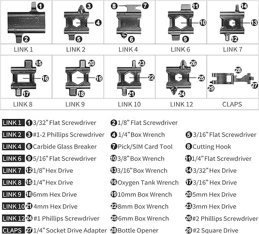 ¼” socket drive, bottle opener, #2 square drive, etc.