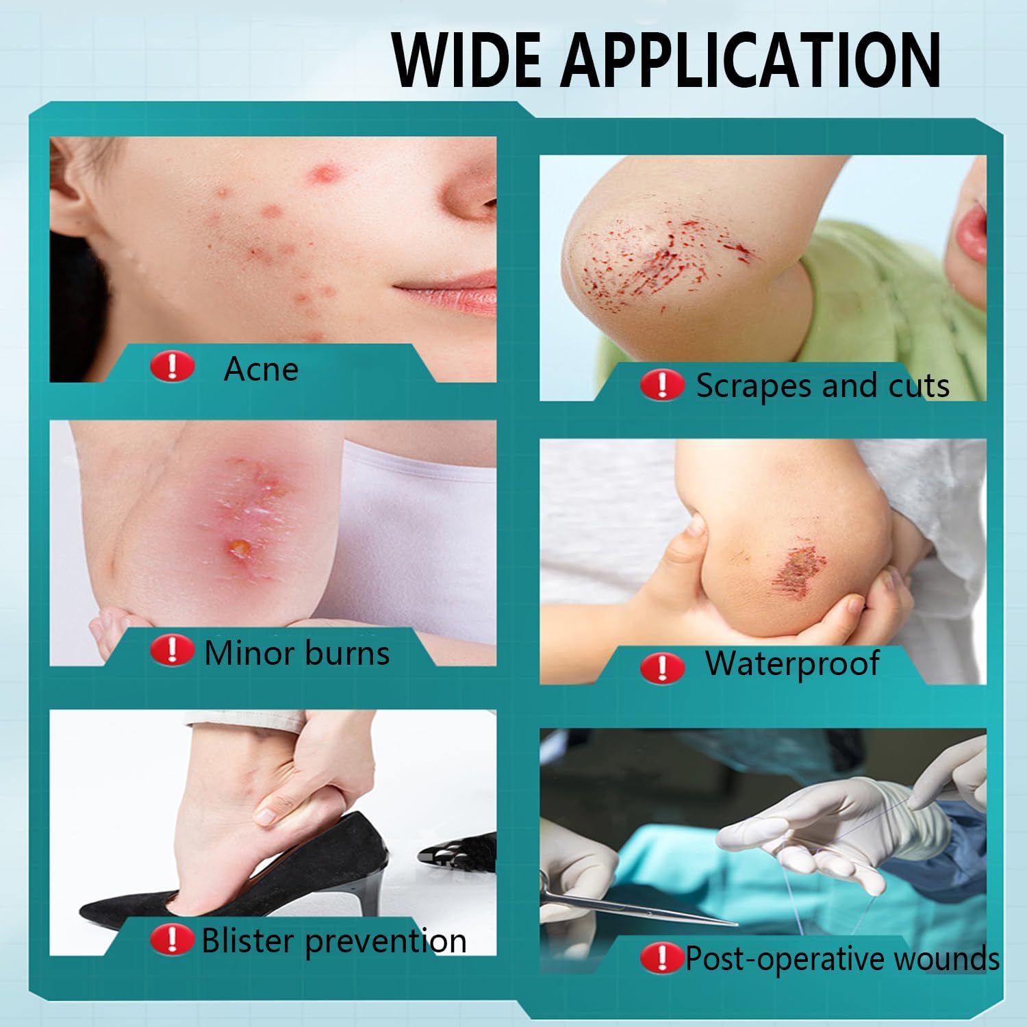 Secure Adhesion -With a 0.3mm ultra-thin design,Flexible design conforms to body contours including face, elbows and knees, Semi-transparent for better visibility of the wound.The hydrocolloid bandage large is highly waterproof, maintaining the wound environment and allowing you to swim and bathe without fear of infection.