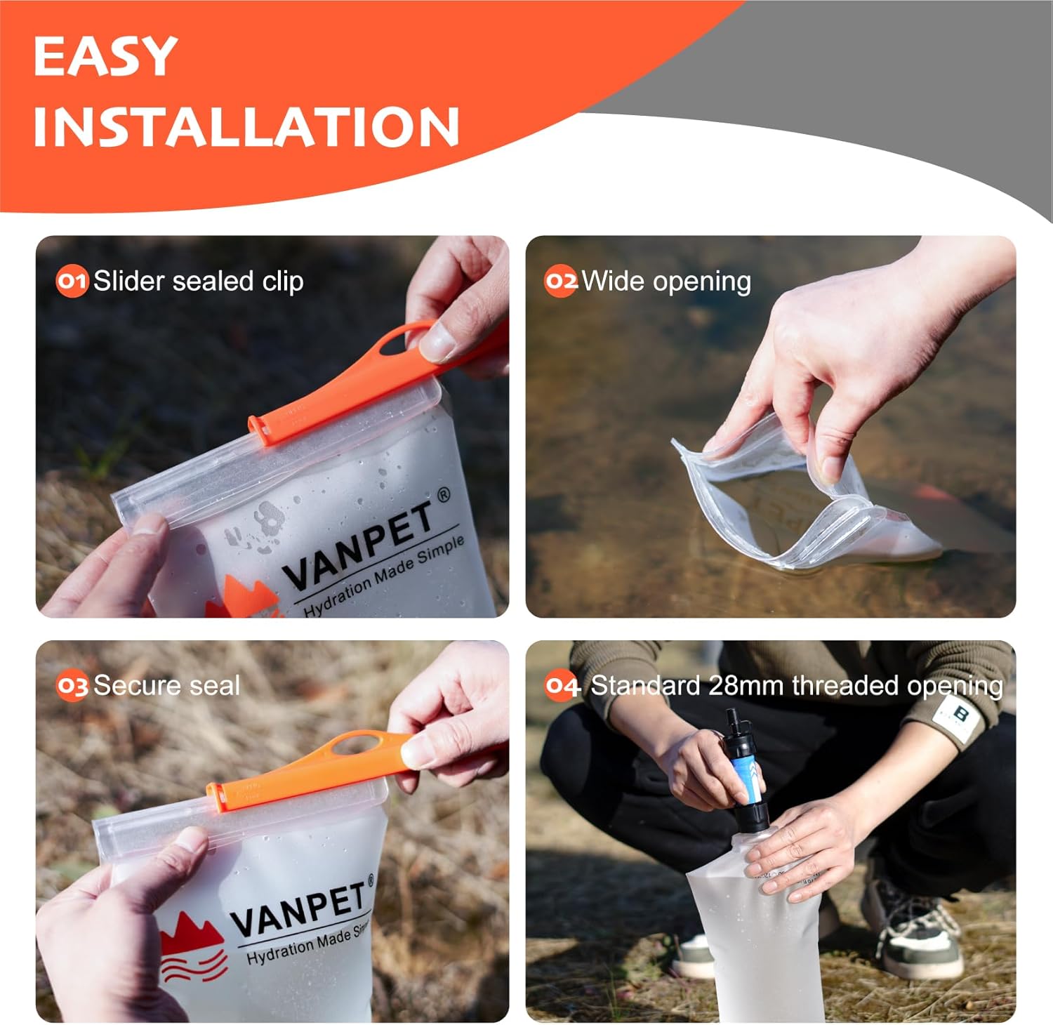 【Dual Opening Design】 The water bag is a dual-opening design with a slider-sealed wide opening for quick water filling, and a standard water bottle-style screw opening that pairs perfectly with the water filter to ensure that you have access to clean drinking water no matter where you are