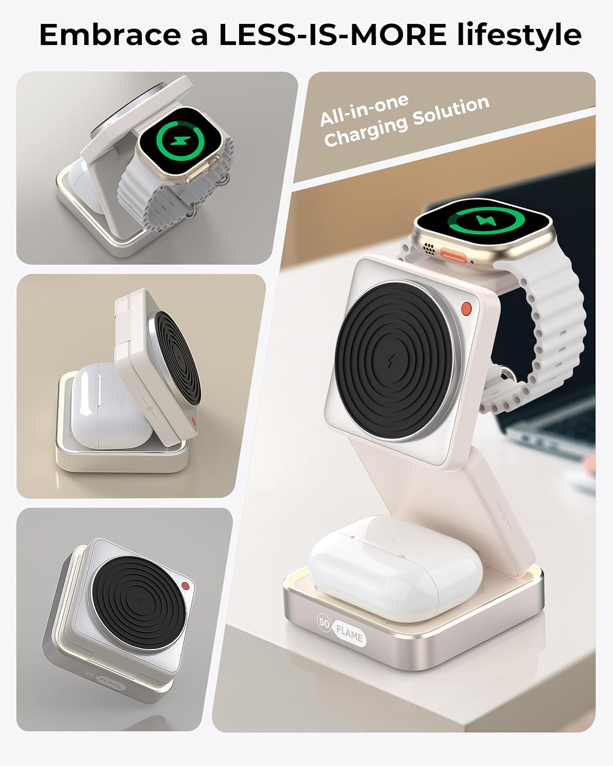 [3 in 1 Foldable Mag-Safe Charging Station for Apple Devices] Charge your iPhone, Apple Watch, and AirPods simultaneously with this 3 in 1 foldable Magnetic charging station. Ideal for nightstands, office desks, or travel—say goodbye to messy cords and enjoy fast, organised charging anywhere.