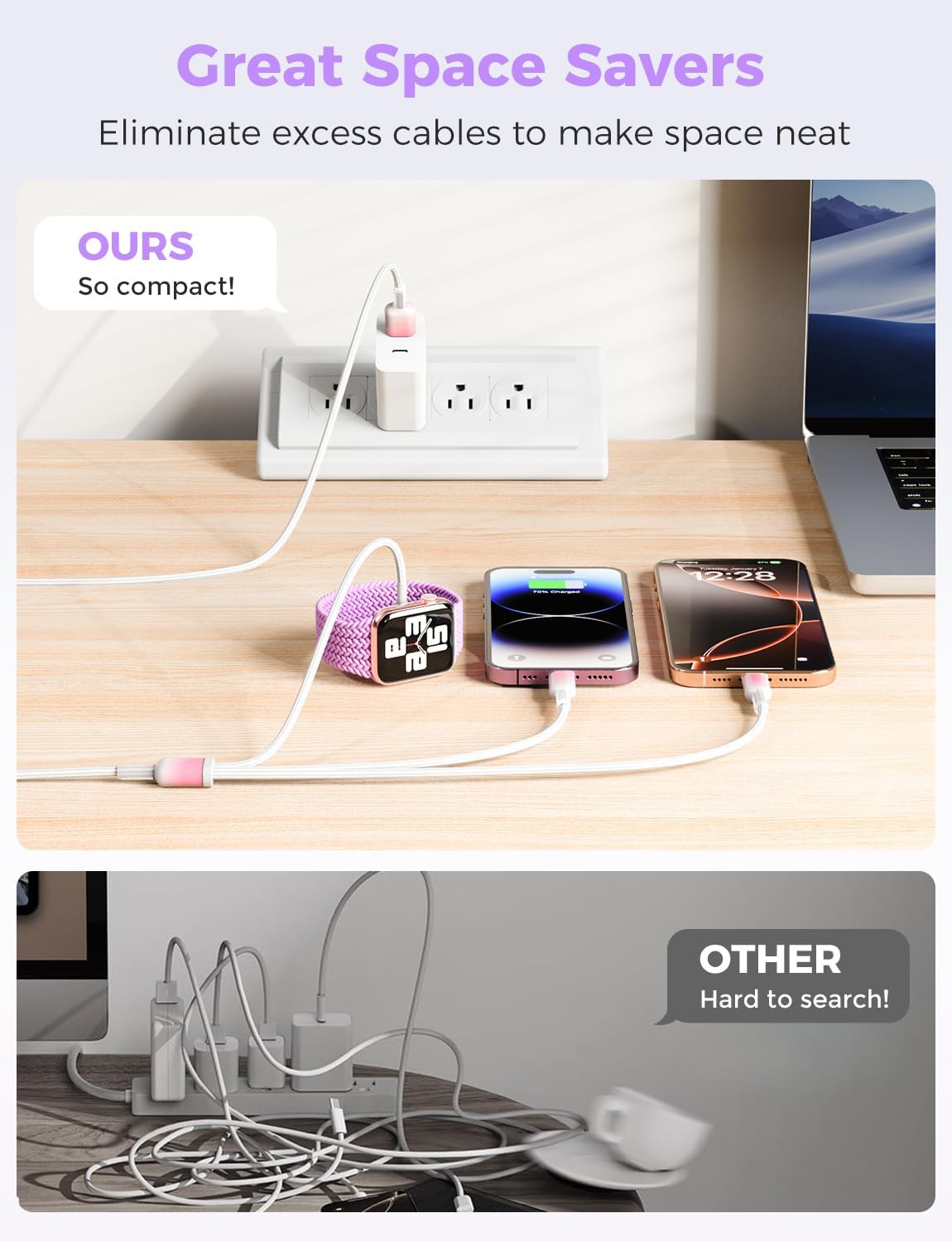🍀【Travel Essentials & 4FT Length】With its lightweight and portable design, this 4 FT 3 in 1 iphone watch charger is perfect for outdoor use. Whether you are traveling, at home, or in the office, this apple watch charger fast charging can accompany you at any time and provide reliable power support for your devices