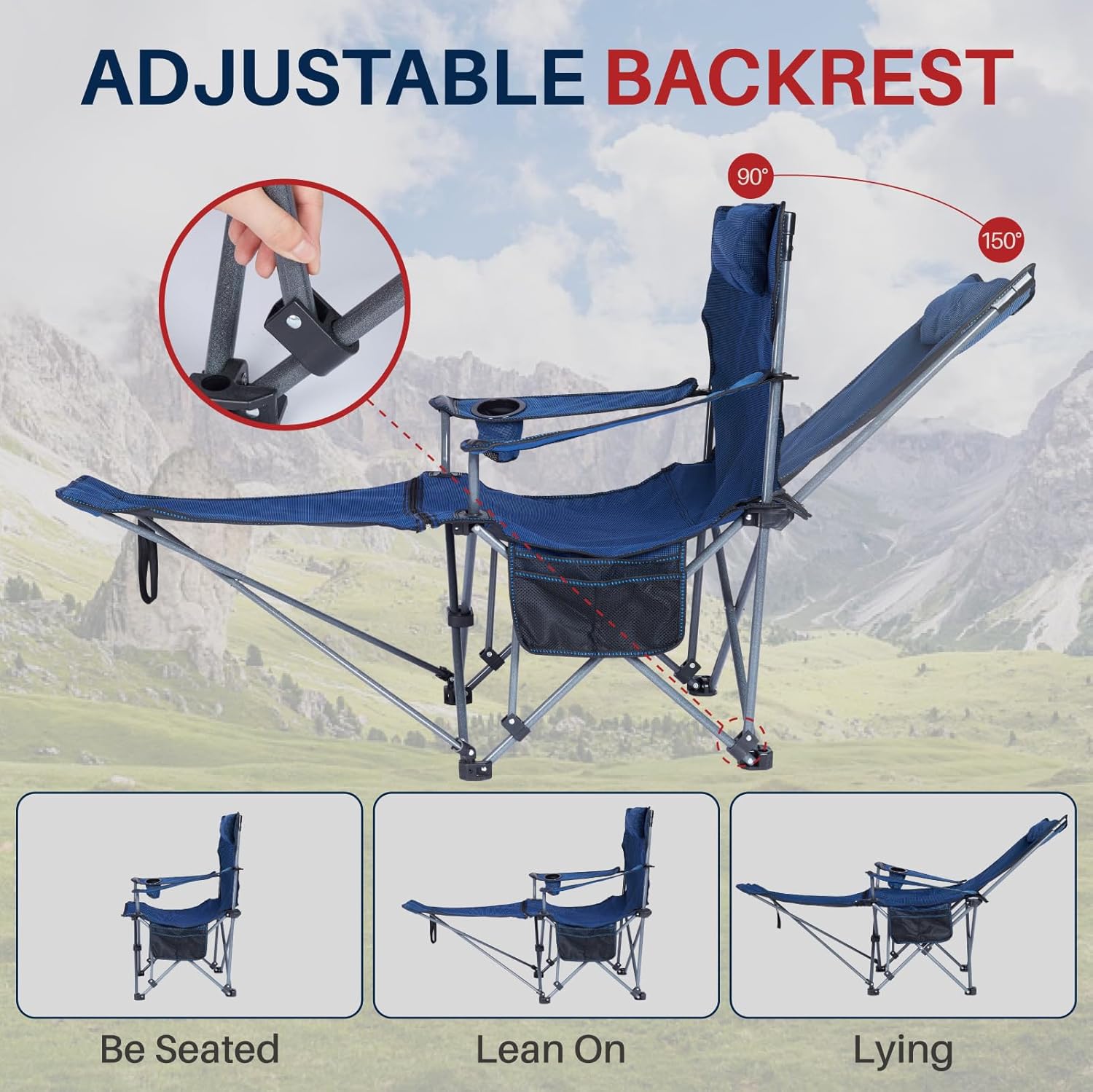 Folding Reclining Camping Chairs Footrest: 3 in 1 Portable Beach Lounge Chair Tanning Chairs with Backpack Lay Flat Lawn Chair Camping Furniture Camp Fishing Outdoor Carry Bag