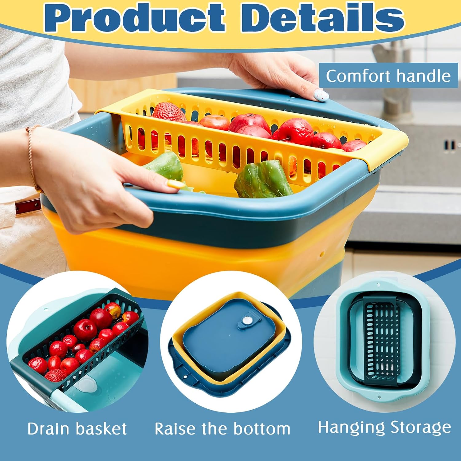 Product Size: the unfolded size of the multifunctional sink is about 16.54*11.81*7.09 Inch, with a large capacity and deep tank design, it is very convenient to wash fruits and vegetables; The height after folding is only 2.36inch (6cm), the volume is small, easy to store, and can save more than 70% of space when storing